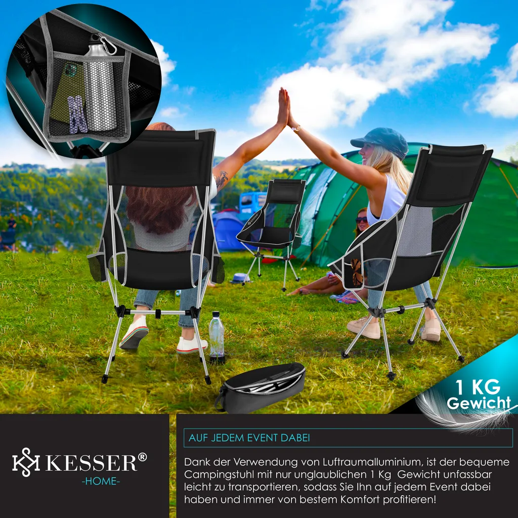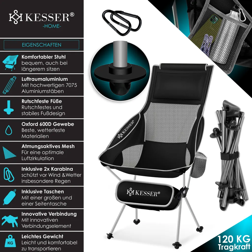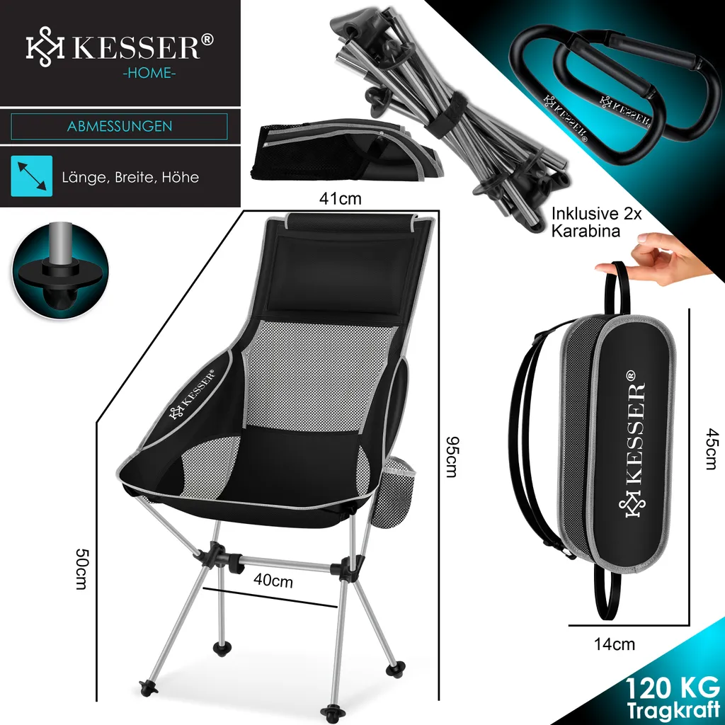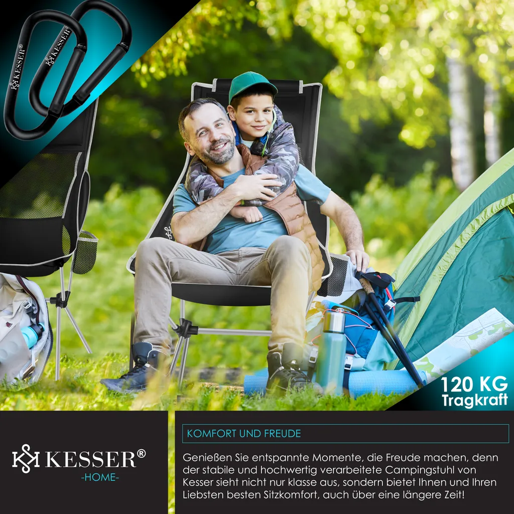 KESSER Campingstuhl aus einem atmungsaktiven Netz und wasserabweisendem Polyester, robustes Aluminiumgestell sorgt für eine Belastbarkeit bis 120Kg, Inkl. Extras wie integriertem Getränkehalter, Tragetasche und Karabinerhaken