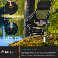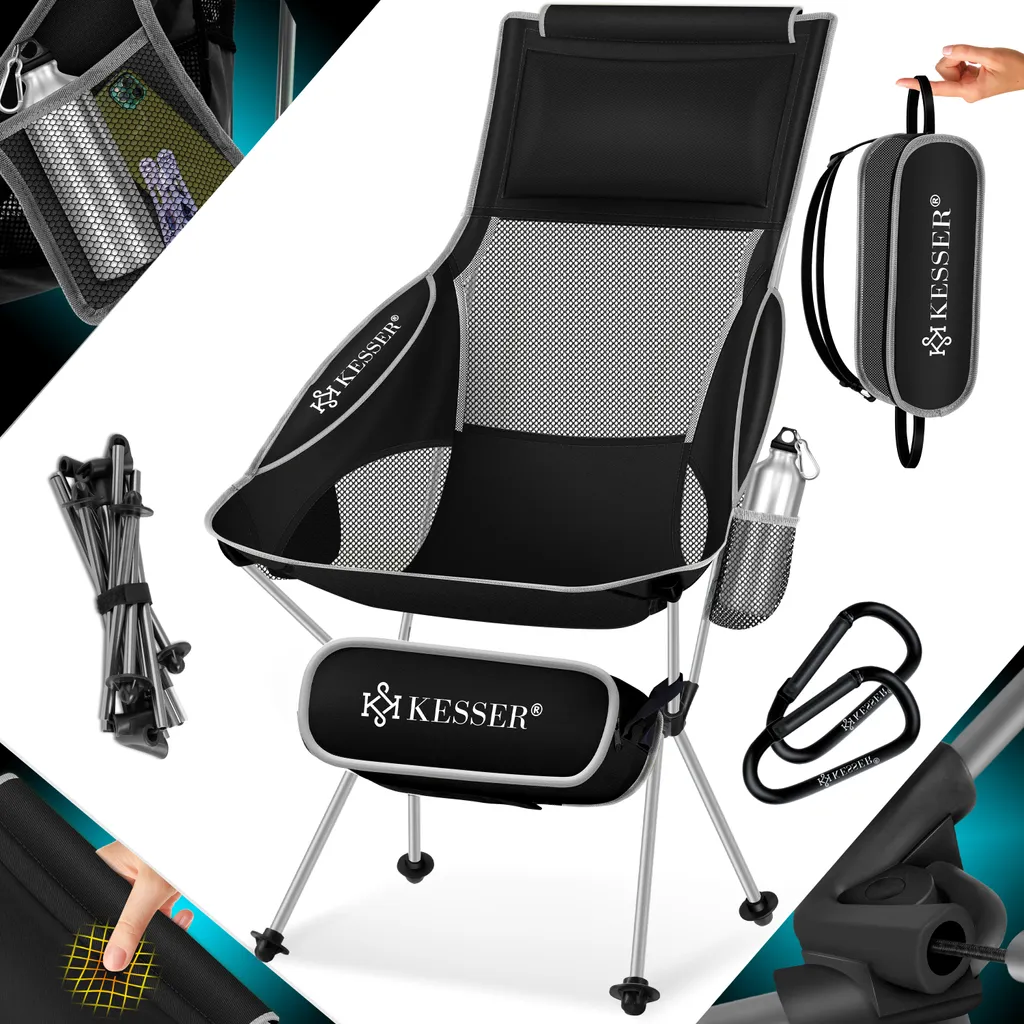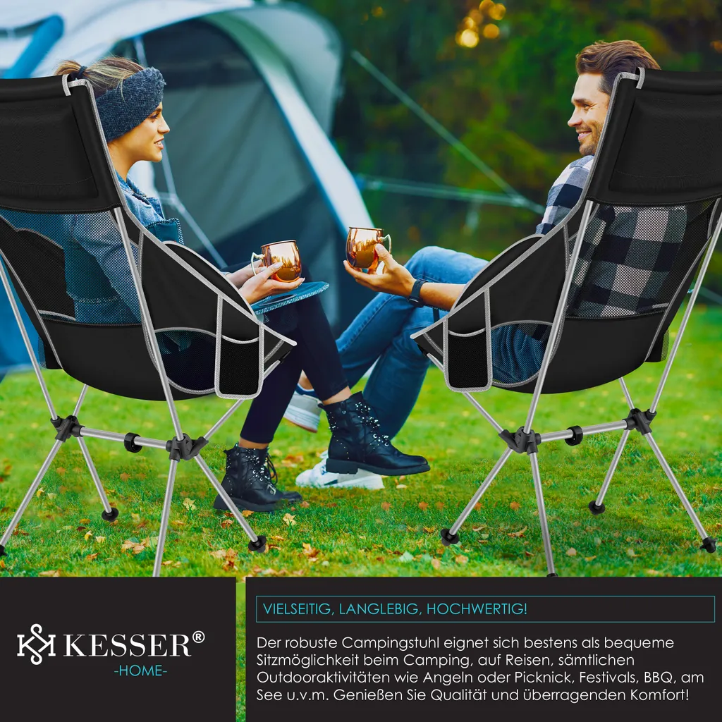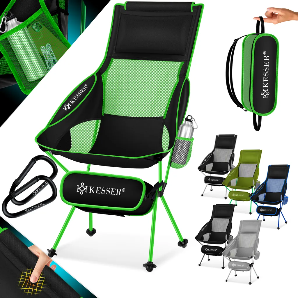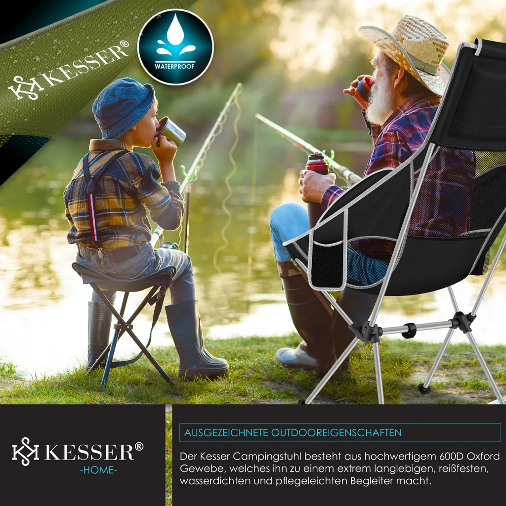 KESSER Campingstuhl aus einem atmungsaktiven Netz und wasserabweisendem Polyester, robustes Aluminiumgestell sorgt für eine Belastbarkeit bis 120Kg, Inkl. Extras wie integriertem Getränkehalter, Tragetasche und Karabinerhaken