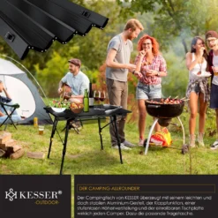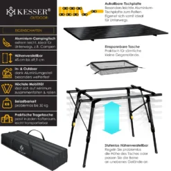 KESSER Campingtisch aus hochwertigem und leichtem Aluminium, besonders wetterfest daher ideal für In- und Outdoor, hohe Belastbarkeit bis zu 30Kg, lässt sich zusammenfalten und ist dank der praktischen Tragetasche leicht zu transportieren