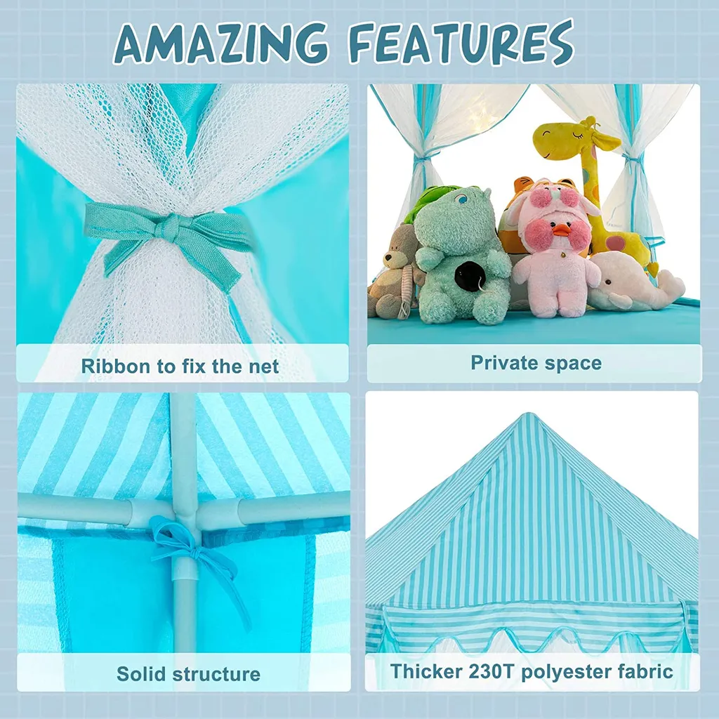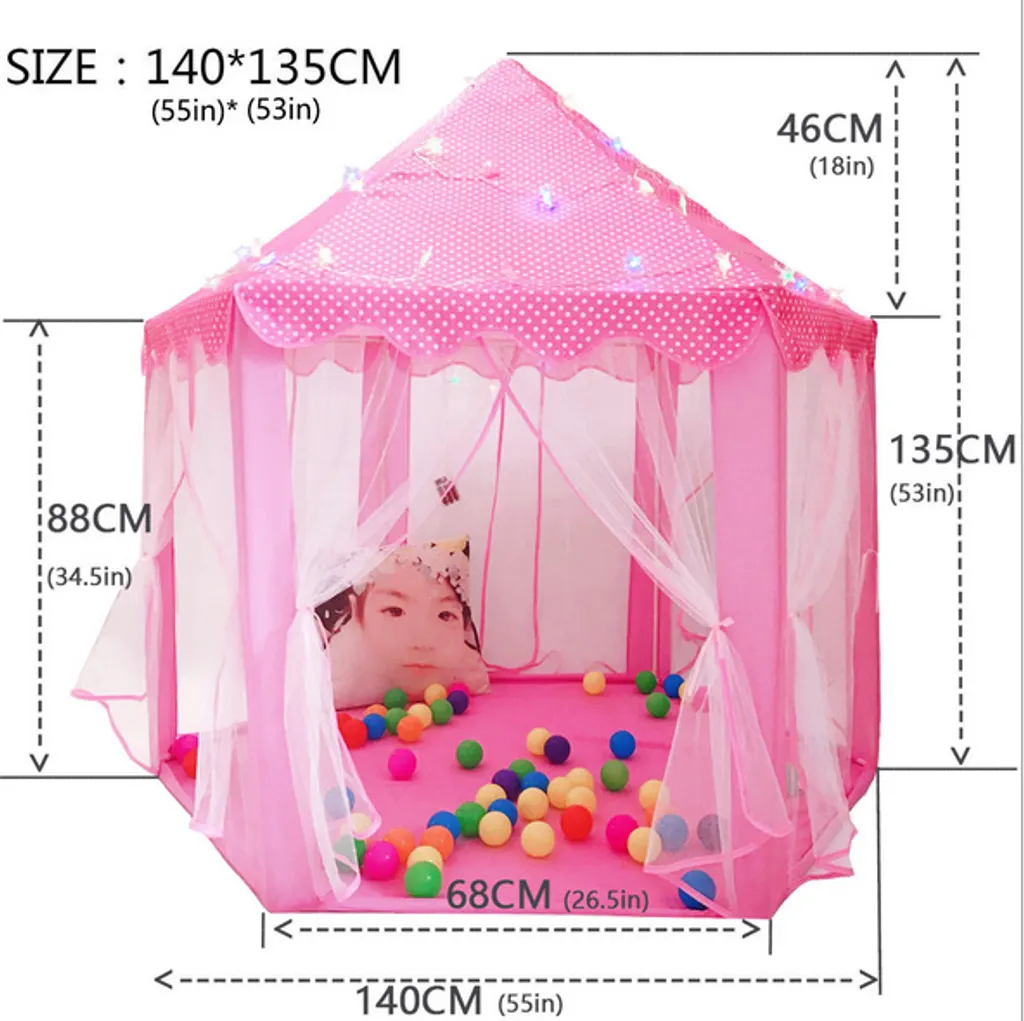 Das speziell sechseckige Design bietet einen perfekt dimensionierten Raum, in dem Ihre Kinder viel Platz zum Stehen und Spielen haben. Auch ein Erwachsener kann hineinpassen. Mit diesem magischen Schloss können Sie in jeder Ecke des Hauses ein Märchenreich für Ihren Schatz erschaffen.