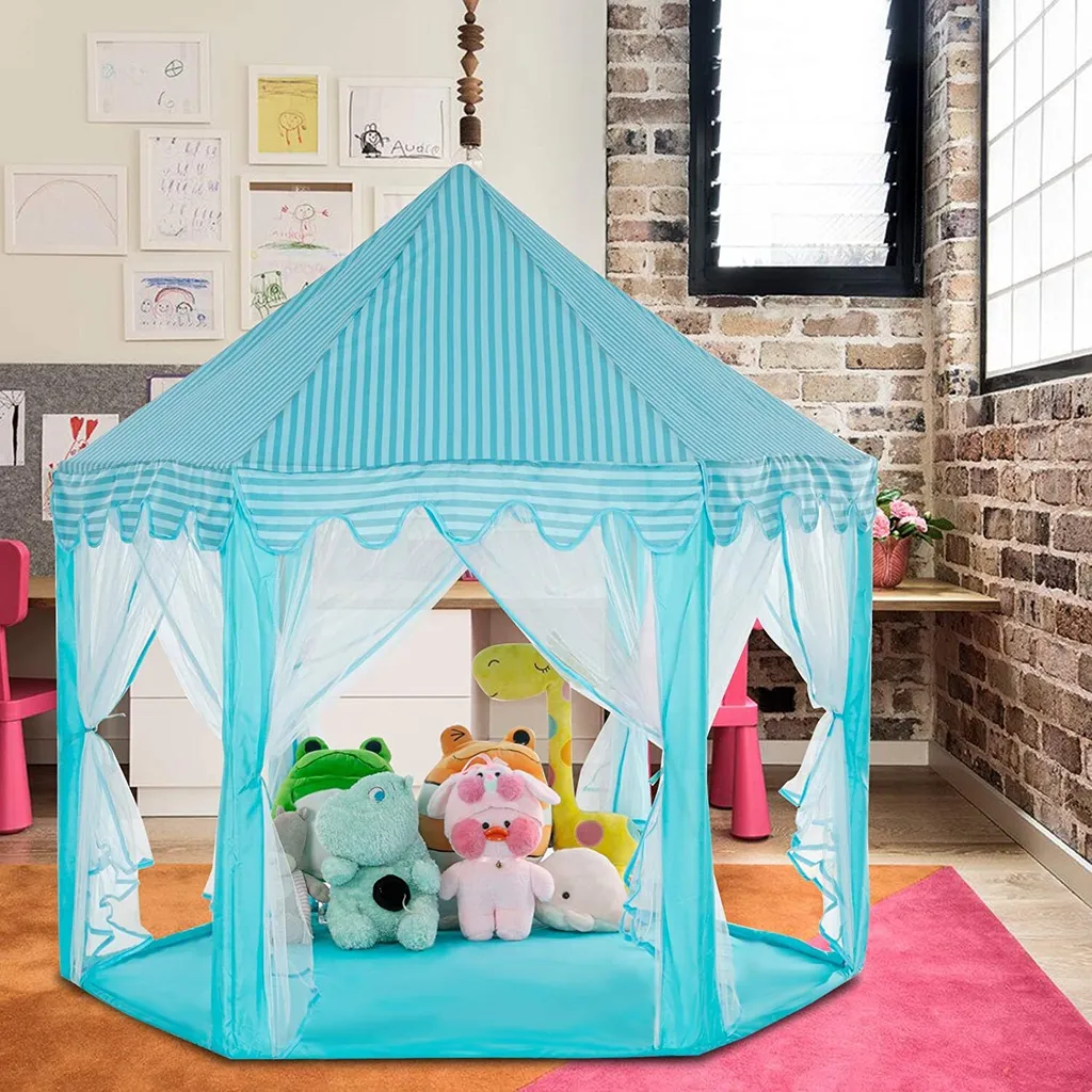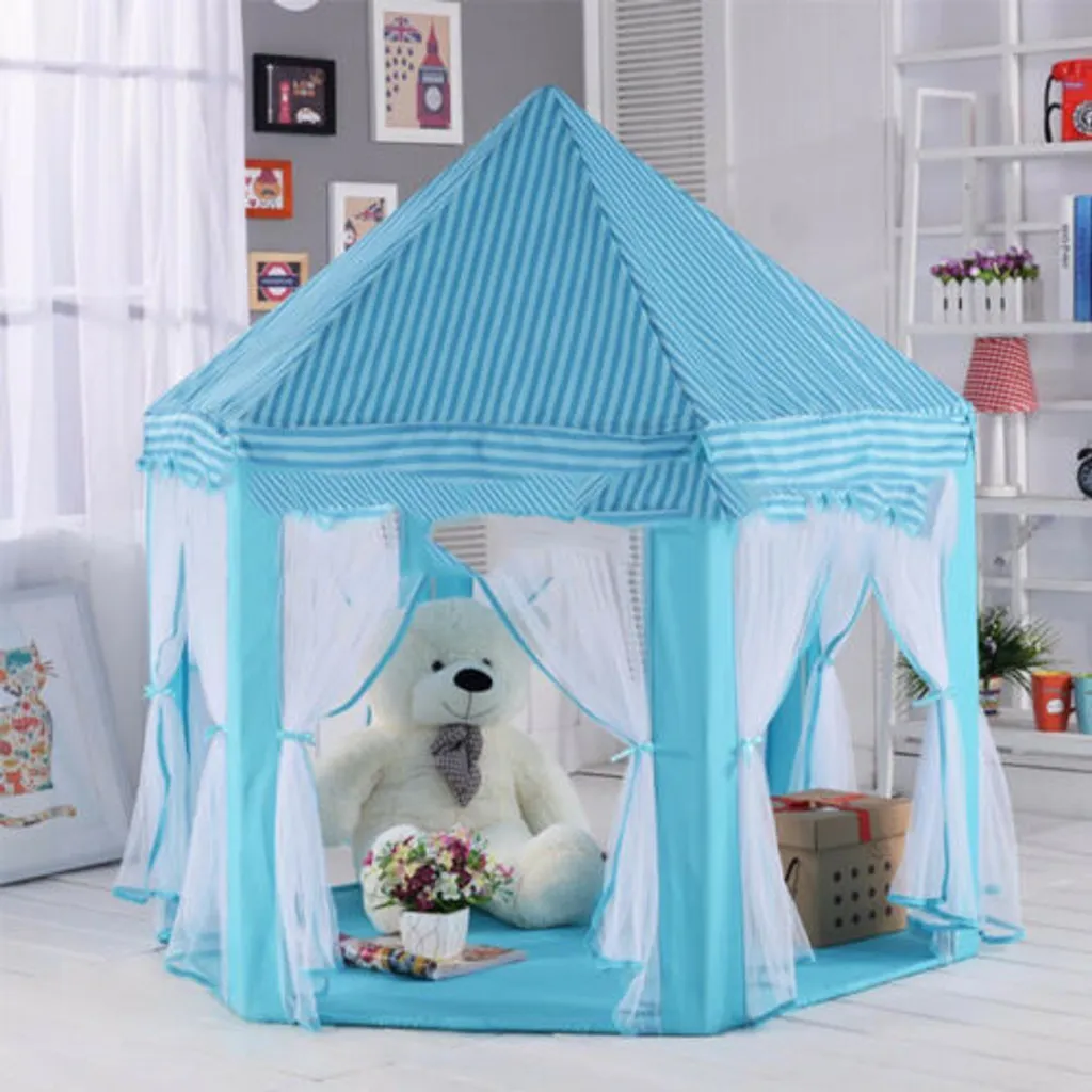 1 * süßes Hexagon Playhouse Mädchen Prinzessin Schloss Kinder Kinder großes Indoor-Spielzelt (Blau)