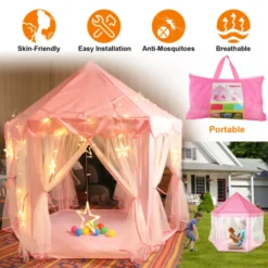 Das speziell sechseckige Design bietet einen perfekt dimensionierten Raum, in dem Ihre Kinder viel Platz zum Stehen und Spielen haben. Auch ein Erwachsener kann hineinpassen. Mit diesem magischen Schloss können Sie in jeder Ecke des Hauses ein Märchenreich für Ihren Schatz erschaffen.