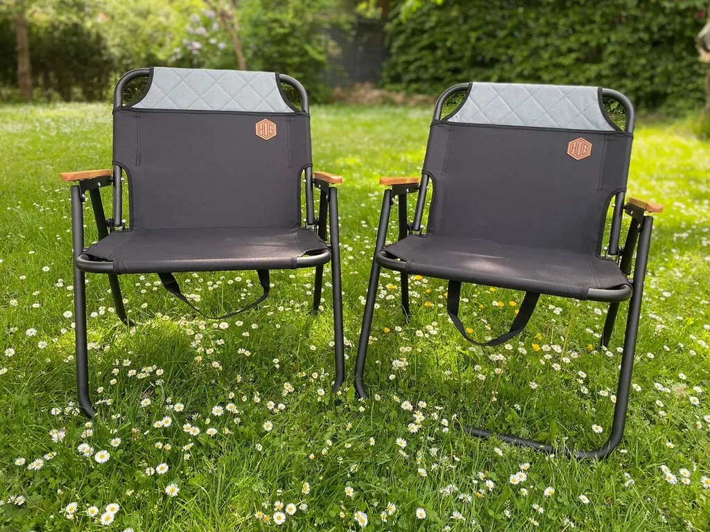 2 klappbare Outdoor Stühle mit bequemer, 41 cm tiefen Sitzfläche (50 cm breit), komfortablen Sitzhöhe von 37 cm und 43 cm hoher Rückenlehne, Tragkraft bis 150 Kg