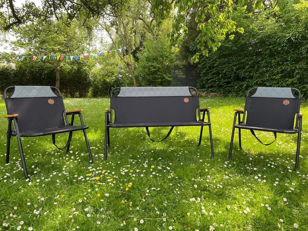 Ein bequemes Plätzchen für Garten und Campingplatz – das 2 er Set Klappstühle ist die ideale Ergänzung zu unsere beliebten Klappbank James. Bilden Sie aus der Bank und diesen 2 Stühlen eine harmonische Sitzgruppe.