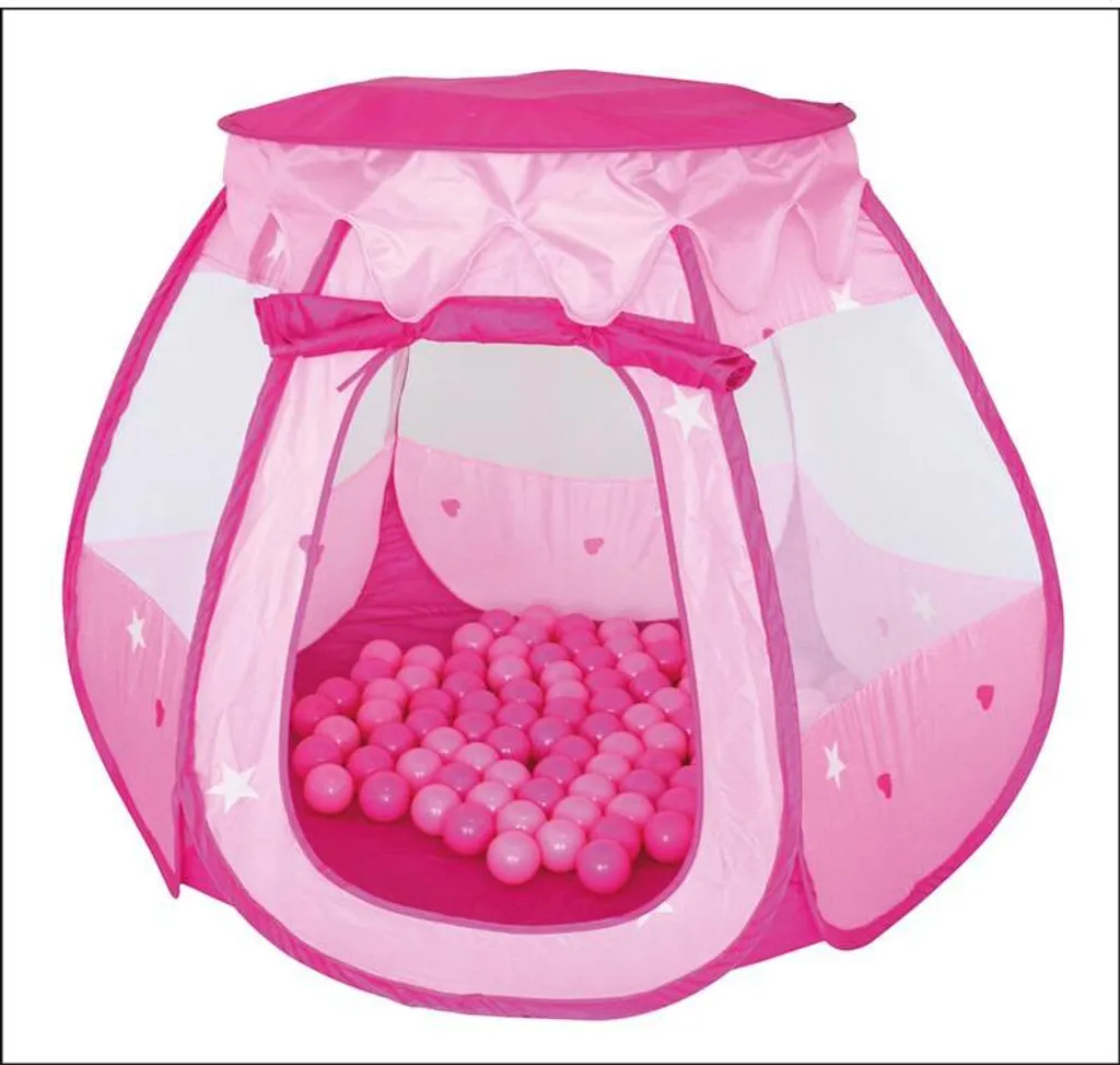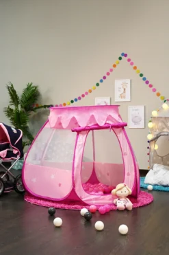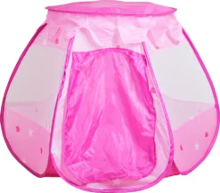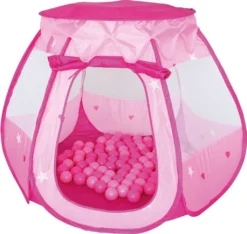 Dieses Ballspielzelt im aufregenden Design „Bella“ ist vielseitig einsetzbar und macht den Kleinen riesigen Spaß. Das Zelt besteht aus wasserabweisendem Zeltstoff. Es hat Seitenwände aus Gaze, durch die die Kleinen nach draußen schauen können und der Eingang kann mit Bändern offengehalten werden. Hand–Augen–Koordination und sensorische Fähigkeiten werden gefördert. 100 pinke Bälle (Durchmesser: Ø 6 cm) sind inklusive.