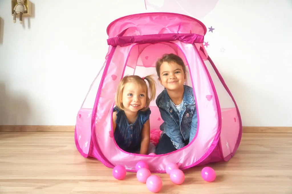 Dieses bunte Spielzelt in zartem Pink und Rosa wird inklusive 100 Bällen geliefert, ist vielseitig einsetzbar und verspricht riesigen Spielspaß. Hand-Augen-Koordination und sensorische Fähigkeiten werden im Spiel mit den Bällen gefördert. Der Eingang kann mit Bändern offengehalten werden. Dank transparenter Seitenwände haben Kinder auch während des Spielens den vollen Durchblick. Das Zelt besteht aus wasserabweisendem Zeltstoff und ist abwischbar.