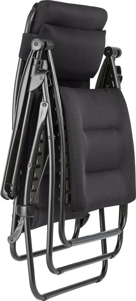 Relaxsessel RSX Clip Air Comfort, stufenlos verstellbar, 70×83-163×88-117 cm, Gestell aus Stahl pulverbeschichtet in schwarz, Flächen aus Batyline in new acier (schwarz) Rahmen aus lackierten Stahlrohren mit Ø 20 mm Air Comfort Bezug belastbar bis 140 kg Mit der RSX Clip Air Comfort® können Sie den weichen Komfort eines Relaxsessels drinnen wie draussen geniessen. Dieses Modell ist die Referenz unter den Relaxliegen in Sachen Entspannung, da sie dafür entwickelt wurde, DIE ideale Relaxposition in Form eines Klappsessels zu bieten. Das wichtigste Prinzip ist die Lagerung der Beine oberhalb des Herzens, was die Erholung optimiert. Unschlagbar in der Entspannung auf der Veranda, im Garten oder ganz einfach im Haus.