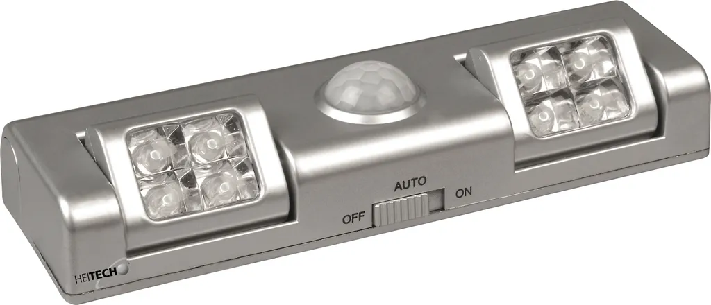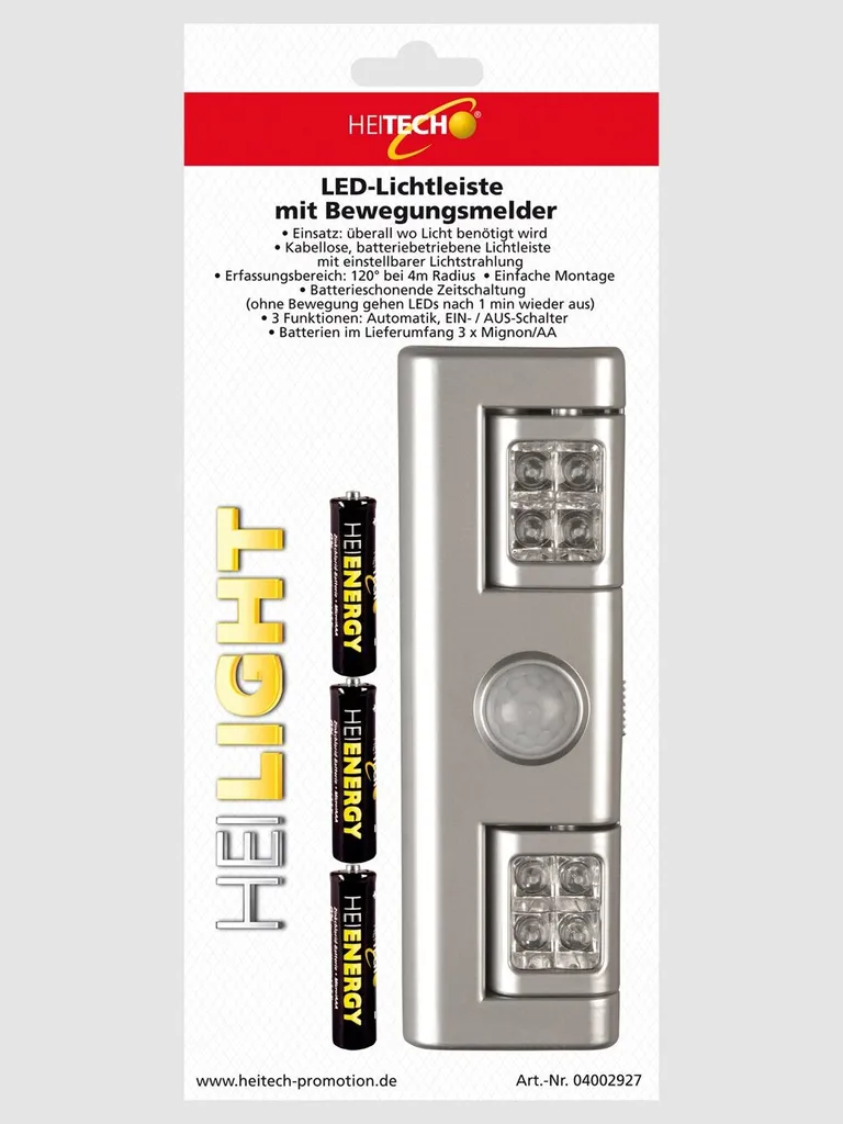 Dieses batteriebetriebene LED-Schranklicht mit Bewegungsmelder von Heitech hat viele verschiedene Einsatzmöglichkeiten. Die LED-Lichtleiste kann mit Schrauben befestigt werden (nicht im Lieferumfang) oder mit einer Befestigungsplatte. Das Bewegungsmelder-Treppenlicht hat eine Batterieschonende Zeitschaltung und einen Erfassungsbereich von 120° bei einem Radius von 4m. Vom Kleiderschrank bis zum Treppenaufgang oder in der Garage: durch den Bewegungsmelder deckt die LED-Lampe ein großes Einsatzspecktrum ab.