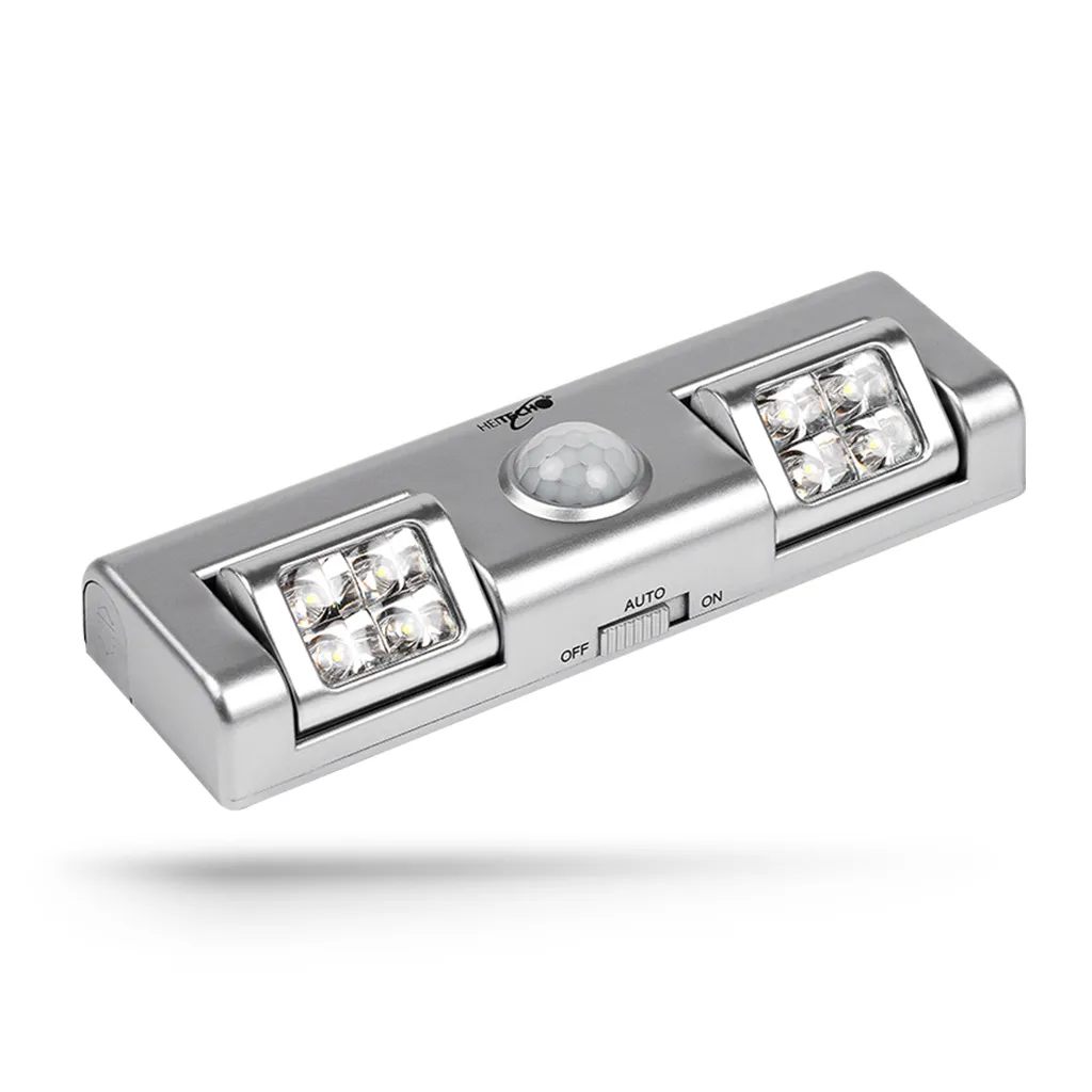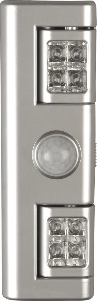 Die LED-Lichtleiste mit Bewegungsmelder kann überall dort eingesetzt werden, wo Licht benötigt wird. Die Lichtstrahlung der Leiste kann eingestellt werden und wird über drei Micro-AAA Batterien betrieben. Der Bewegungsmelder verfügt über einen Erfassungsbereich bei 120 Grad bei einem Radius von ca. 4 m. Außerdem steuert die integrierte Zeitschaltung die Leuchtdauer der LEDs. Als auswählbare Funktionen können Automatik, Ein- oder Aus-Schaltung betätigt werden.