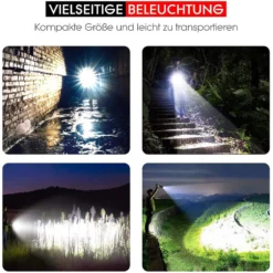【Superhell Zoombar Taschenlampe】:. Die maximale Ausgangsleistung beträgt 500 Lumen und die maximale Reichweite 500 Meter. Es kann leicht den gesamten Vorgarten beleuchten. Geeignet für Camping im Freien, Suche und Rettung sowie Abendspaziergänge.