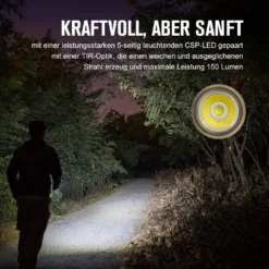 - Max. Leistung / Reichweite: 150 Lumen / 40 Meter