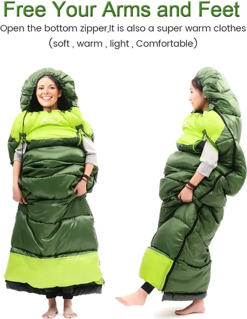 【WEARABLE UND KOMFORTABEL】Der wearable Schlafsack ist konzipiert, dass 2 Reißverschlusses für 2 Arm strecken.Das einzigartige Design des unteren Reißverschlusses , Öffnen Sie einfach den unteren Reißverschluss, um frei herumzulaufen.Bei kaltem Wetter müssen Sie nicht aus Ihrem bequemen Schlafsack herauskommen.Bleiben Sie warm, während Sie Ihr Telefon benutzen, lesen oder Ihr Lieblingsgetränk genießen.Perfekt für Camping, Familienurlaub und Büro.
