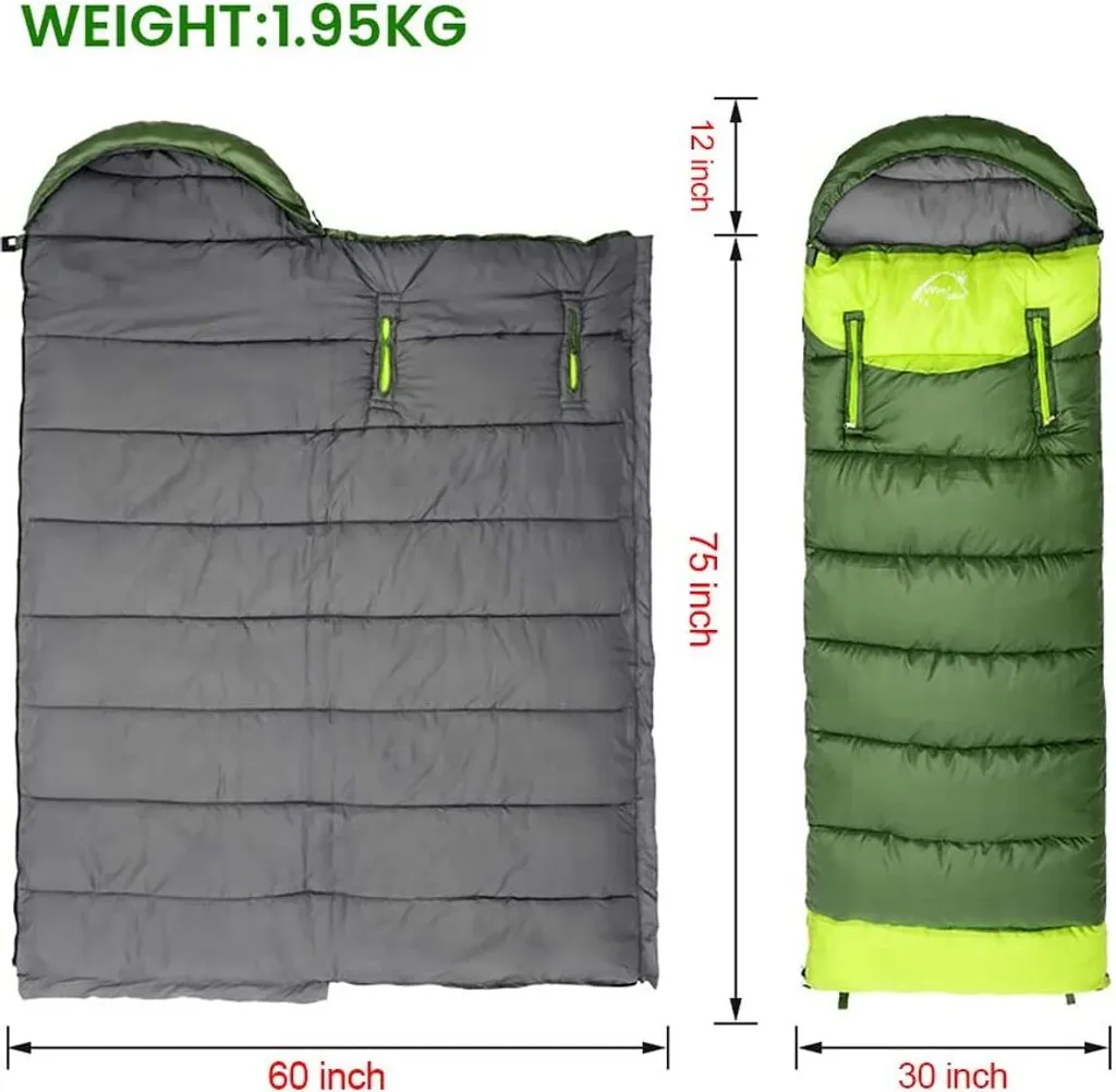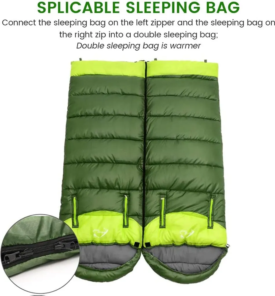 【GEEIGNET FÜR 4 JAHRESZEITEN】 Diese Schlafsäcke sind so konzipiert, dass Sie auch bei Temperaturen nahe dem Gefrierpunkt warm und sicher bleiben.Die Schlafsäcke sind außerdem wasserdicht und wetterbeständig, damit Sie auch bei Nässe warm bleiben und vor Feuchtigkeit geschützt sind. Dies wird durch unsere Doppelschichttechnologie, unser sechseckiges Gewebe und unsere S-förmigen Nähte erreicht.