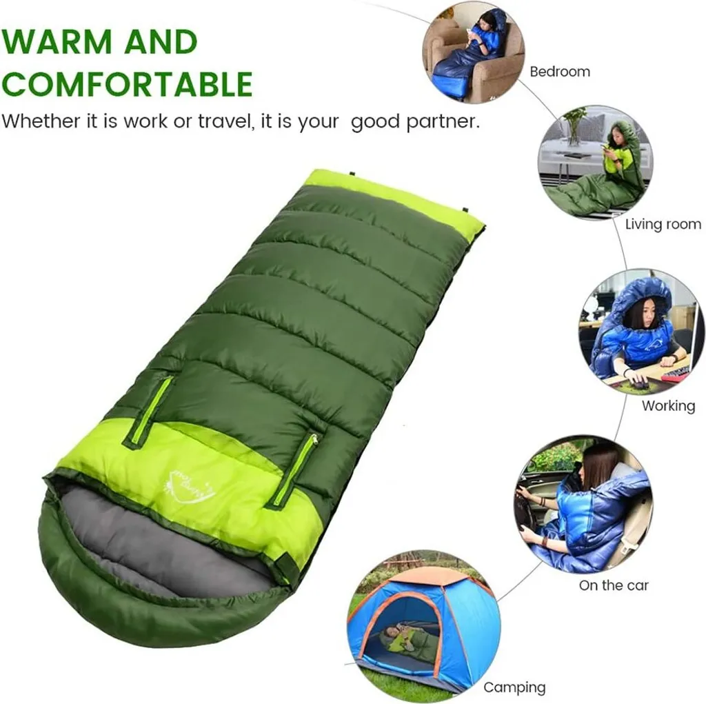 【FÜLLUNG MIT WARMER BAUMWOLLE】Nach einem langen Tag auf Wanderungen, Reisen oder Entdeckungsreisen haben Sie sich eine erholsame Nachtruhe verdient. Die Baumwollfüllung des Schlafsacks ist leicht, weich und atmungsaktiv. Unsere wasserdichten Schlafsäcke bestehen aus hochwertigem 190T Polyester und einem Innenfutter aus 180T weiche Seide. Sie werden die ganze Nacht warm und bequem bleiben, sogar bei so niedrigen temperaturen wie -10 Grad!