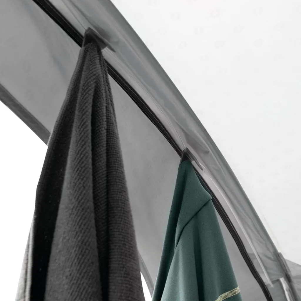 - Hook Track System: Du wirst auch den Komfort des Hook Track Systems von Outwell zu schätzen wissen, mit dem du Lampen, Kleidung und andere leichte Gegenstände sicher über dem Boden aufhängen kannst.