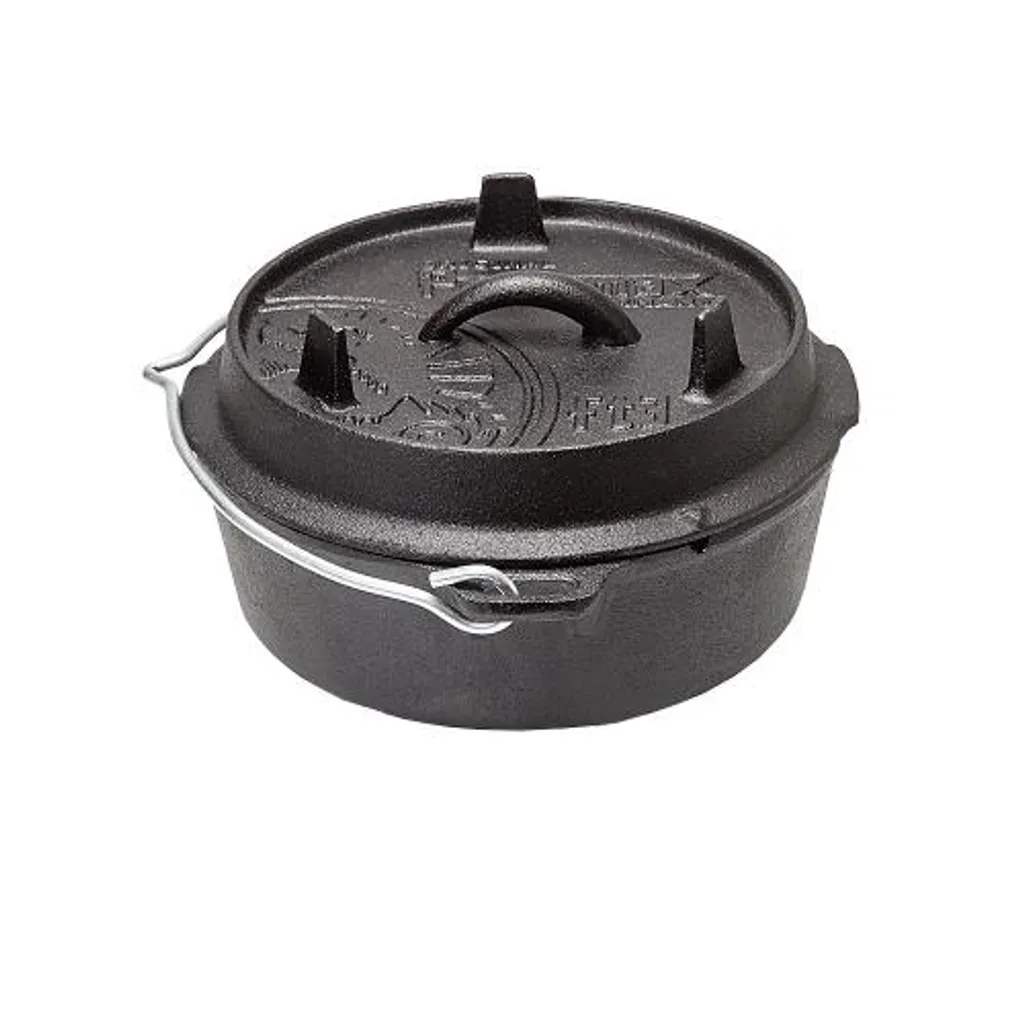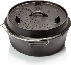 Der aus robustem Gusseisen gefertigte Feuertopf ist der ideale Begleiter für Dich beim Camping-, Outdoor- und Freizeitaktivitäten.