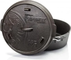 Er ist schwarz und er ist robust! Der Petromax Feuertopf ist ein vollständig aus Gusseisen gefertigter Topf von exzellenter Qualität. Weitläufig auch als Dutch Oven bezeichnet, ist der Petromax Feuertopf ideal für das Kochen im Freien und im heimischen Backofen geeignet. Die exzellente Wärmeleitung und die Speicherung der Wärme über einen langen Zeitraum sowie die extreme Robustheit zeichnen den Topf aus. Der ideale Begleiter für Ihre Camping-, Outdoor- und Freizeitaktivitäten. Mit ihm garen Sie Speisen, wie z. B. Fleisch und Gemüse, sehr schonend im eigenen Saft über offenem Feuer oder im Backofen. Der Deckel des Feuertopfs kann zudem optional als Servierplatte oder Pfanne genutzt werden. Dank der vorbehandelten Oberfläche (seasoned finished) können Sie den robusten Petromax Feuertopf aus Gusseisen sofort einsetzen.