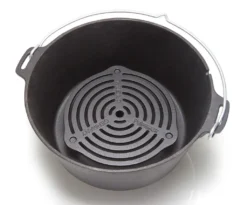 Der Deckel ist auch aus Gusseisen. Die Formen lässt sich beim Draußen-Kochen mit Glut oder Briketts bestücken, sodass eine hervorragende Rundumwärme entsteht, wie bei einem Feuertopf.