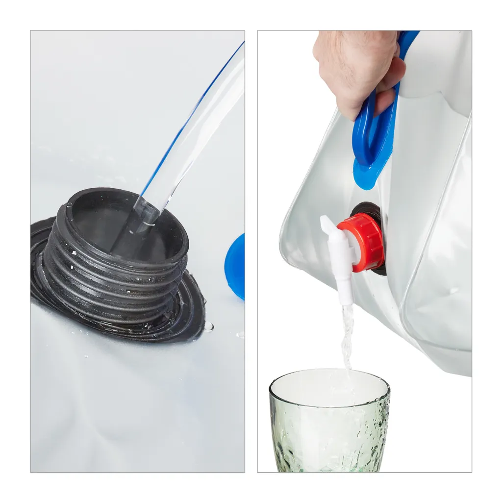 Sommerliche Outdoor-Aktivitäten ohne ausreichenden Wasservorrat können schnell zu einer echten Durststrecke werden. Mit den tragbaren Leerkanistern im 4er Set haben Sie die nötige Trinkwasserreserve bei Camping oder Festival immer parat. Dabei macht es Ihnen der drehbare Hahn leicht, die gewünschte Wassermenge zu zapfen. Die praktischen Wasserbehälter lassen sich zudem platzsparend zusammenfalten und so leicht im Kofferraum oder Rucksack verstauen.