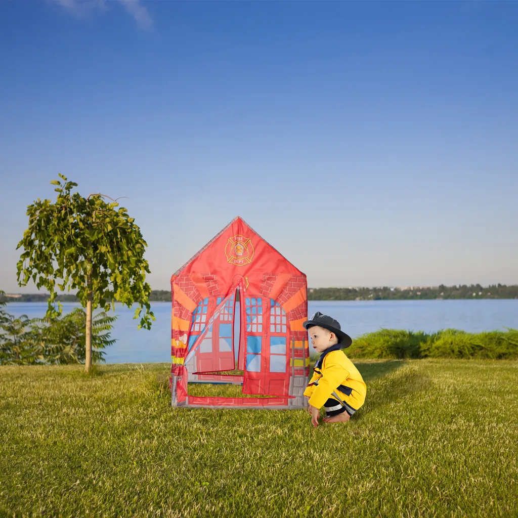 Für zukünftige Brandmeister wird mit diesem Feuerwehr Kinderzelt ein Traum wahr. Ihre Jungs können das große Zelt als Höhle oder Spielhaus nutzen. Durch die offenen Eingänge können sie rein- und rauskriechen. Ihrer Fantasie, als kleine Lebensretter, sind keine Grenzen gesetzt. Der große Spielspaß für die Kleinen kostet Sie nur wenige Minuten Aufbauzeit. Nutzen Sie das leichte Spielzelt nicht nur im Kinderzimmer, sondern auch im Garten, zum Beispiel als Highlight zum Kindergeburtstag.