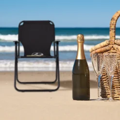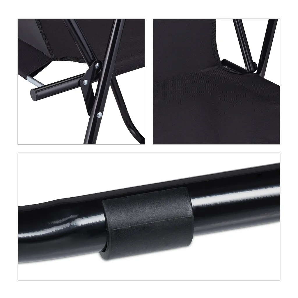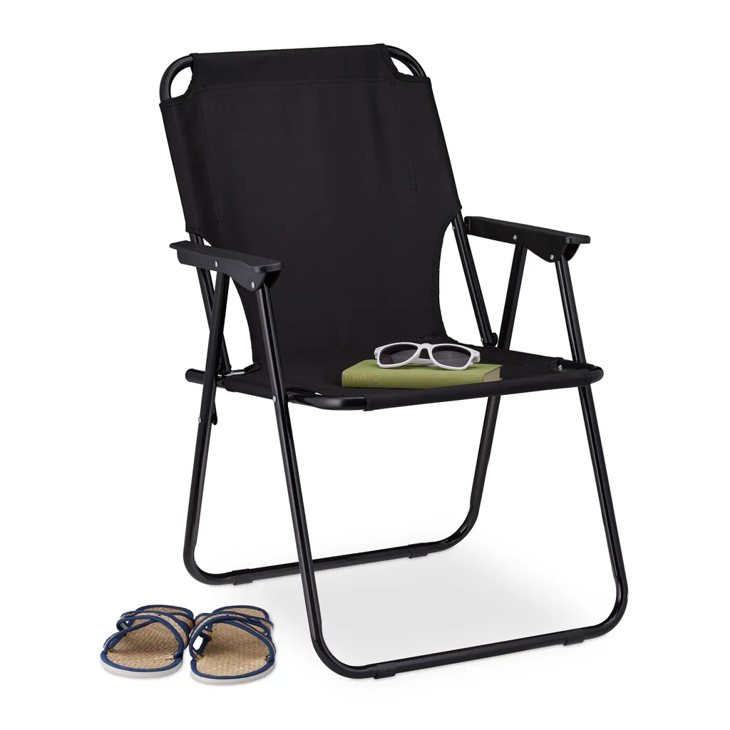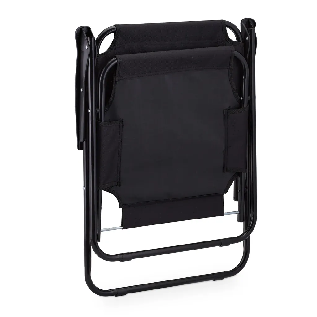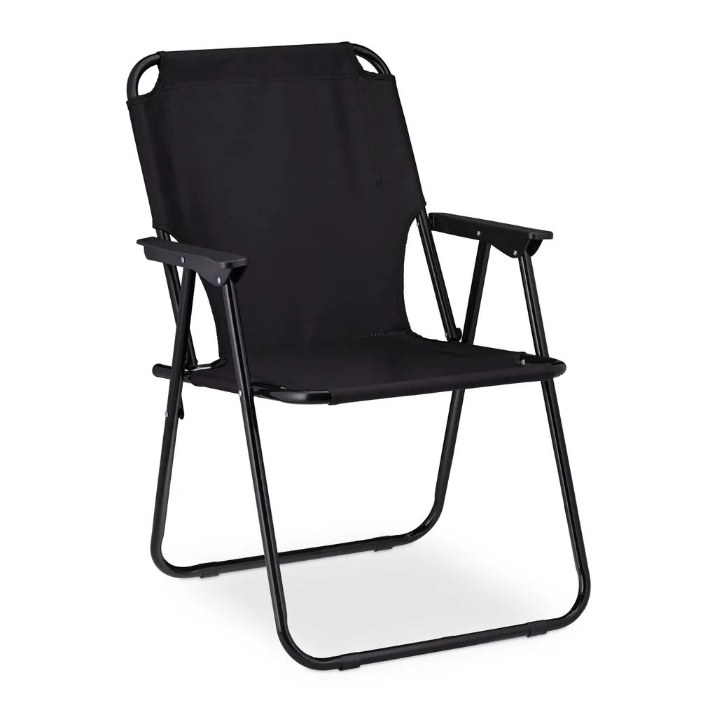 Ob beim Public Viewing, Wandern oder auf dem Festival: Mit diesem Klappsessel hast du immer eine bequeme Sitzgelegenheit parat. Der Strandstuhl lässt sich schnell aufklappen und kann dank seines geringen Gewichtes problemlos mitgenommen und auch platzsparend verstaut werden. Das Eisengestell sorgt für die nötige Stabilität und auch nach einem Regenguss ist die Sitzfläche aus Polyester schnell wieder trocken. Auch zum Angeln oder am Strand macht der Faltsessel eine gute Figur.