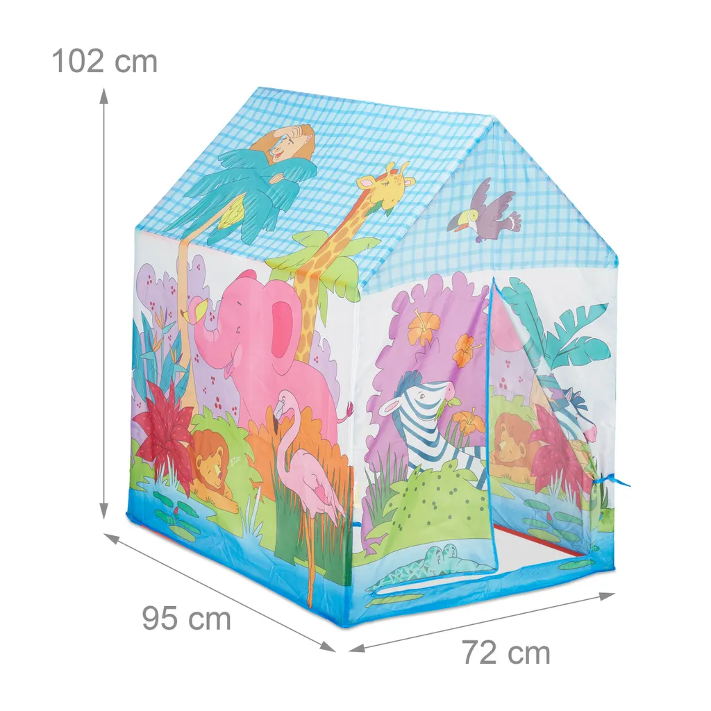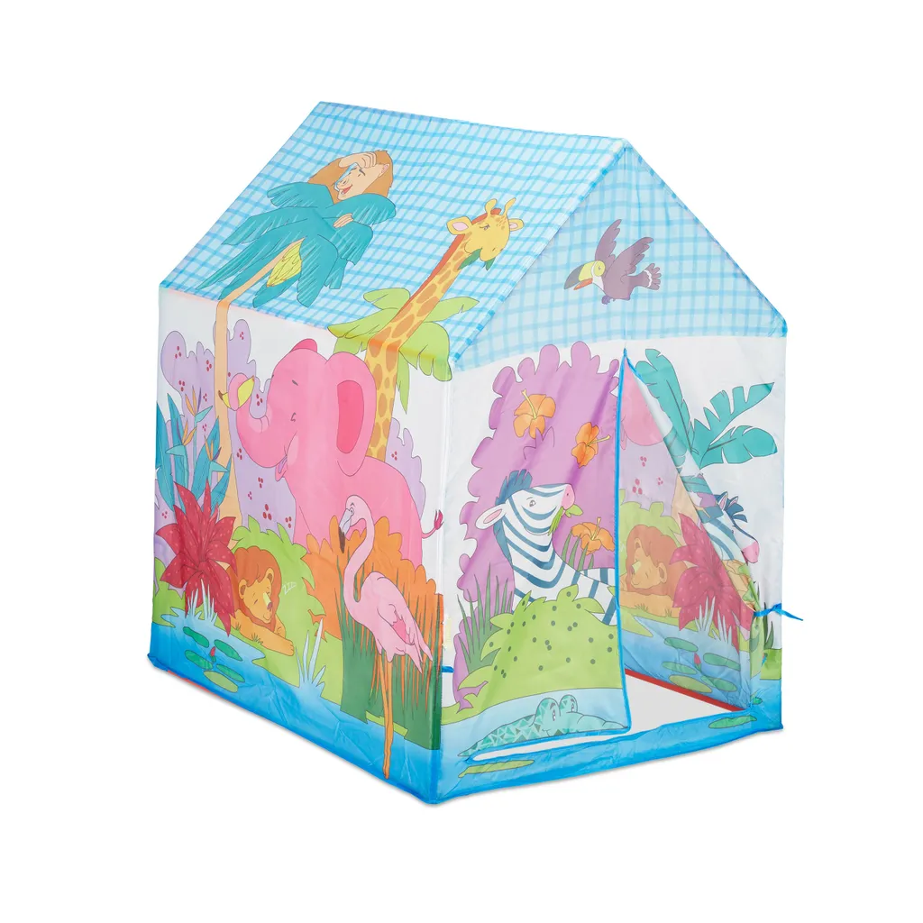 Für kleine Abenteurer wird mit diesem Safari Spielzelt ein Traum wahr. Jungen wie Mädchen können das große Zelt als ihre Höhle oder ihr Spielhaus nutzen. Durch die offenen Eingänge können sie rein- und rauskriechen. Das kunterbunte Design mit Tieren aus dem Dschungel erfreut jedes Kinderherz.