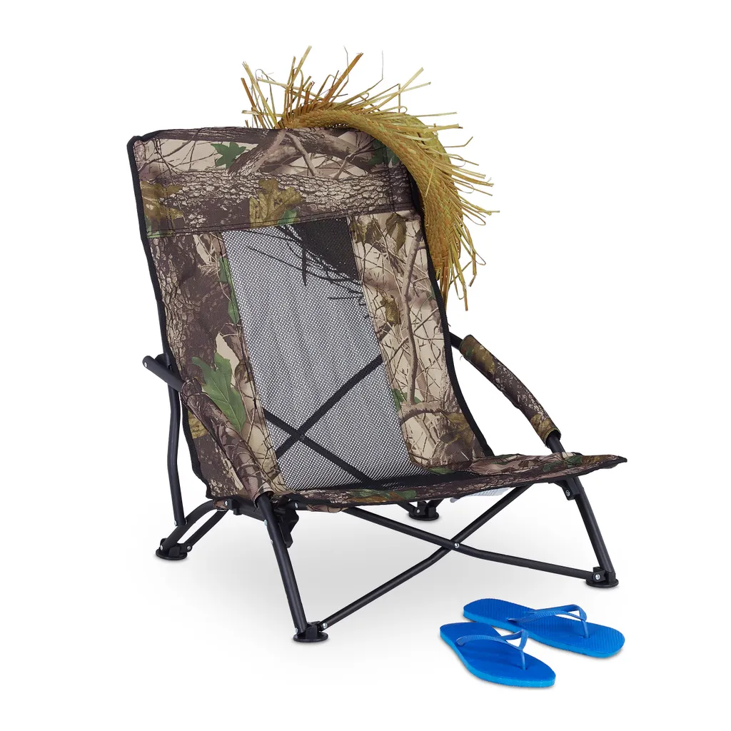 Ob beim Public Viewing, für das Chill-Out im Garten oder als praktisches Sitzmöbel für Camping-Enthusiasten: Dieser Faltstuhl hat viele Talente. Zum einen bietet er dank seiner gepolsterten Armlehnen und der hohen Rückenlehne besten Sitzkomfort. Zum anderen ist das Design des Picknicksessels dekorativ und kann vor allem Anglern zu Gute kommen – Werden Sie mit dem Waldmotiv nicht sofort entdeckt. Außerdem überzeugt der Faltstuhl mit extra breiten Standfüßen, die das Versinken im Sand verhindern. Um ihn platzsparend zu verstauen, klappen Sie den Campingstuhl einfach zusammen und bewahren ihn in der beliegenden Transporttasche auf.