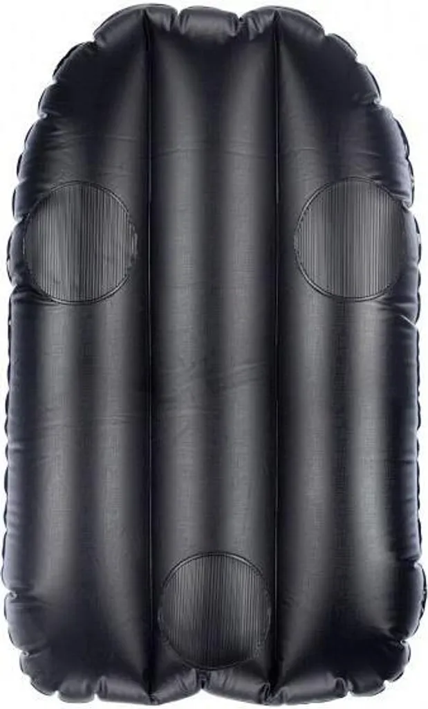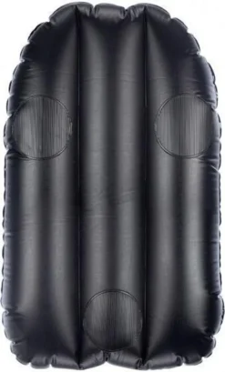 Lieferumfang: Ein aufblasbarer Schneegleiter Schlitten und eine Reparaturfolie. Maße 102x64x46cm, mit 2 Handgriffen und 3 Ski-Pads auf der Unterseite.