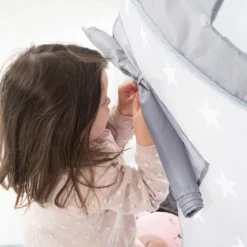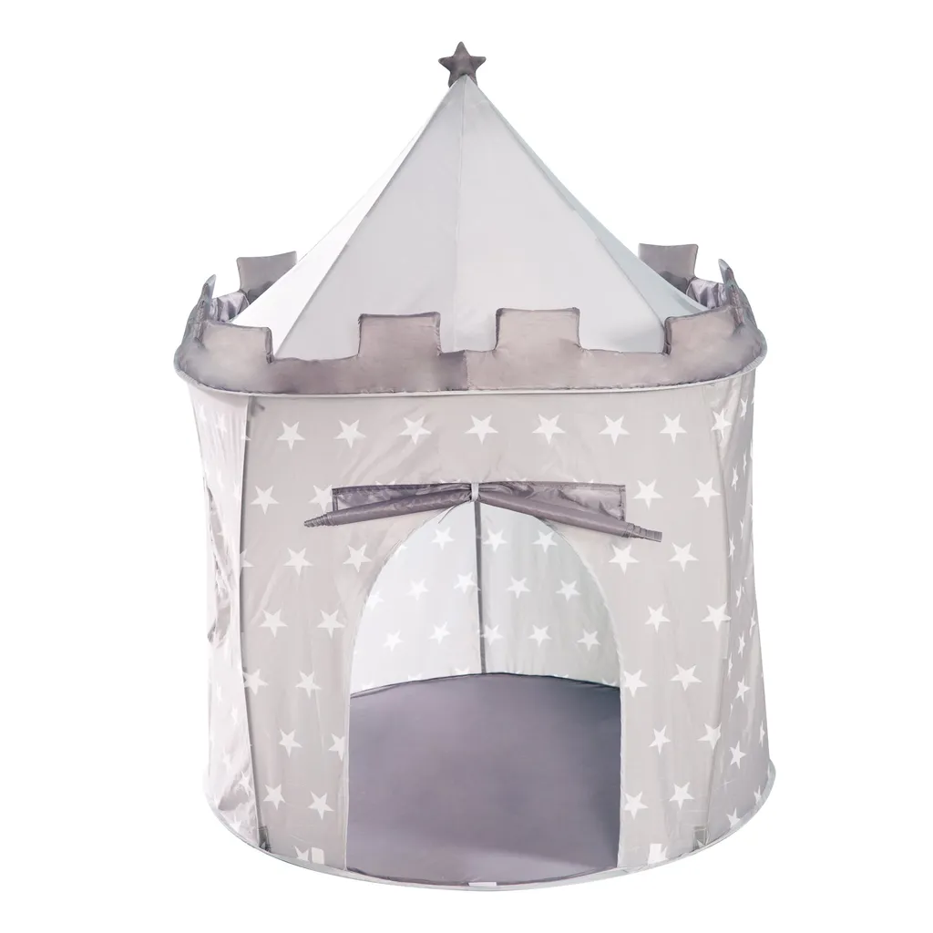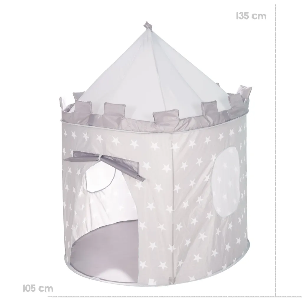 Tipi Zelt Spielzelt Baumwolle Kinderzelt Mit 2 Kissen Matratze Beleuchtung – Grau Mit Sternen