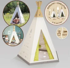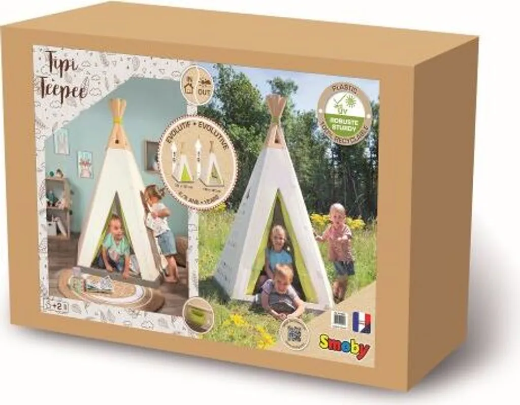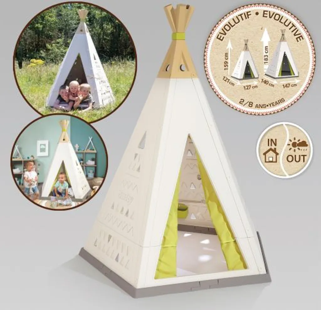 Das innovative Smoby Spielzelt Tipi ist etwas ganz Besonderes. Denn hergestellt aus UV-stabilem Kunststoff ist es leicht, abwaschbar und sowohl für Innen als auch Außen geeignet. Die Kleinen können ganz in ihre eigene Spielwelt eintauchen und dabei Freunde und Geschwister zum Spielen einladen. Dazu lässt sich der integrierte Textilvorhang für geheime Gespräche mit seinem Klettverschluss schließen. Im Inneren des Tipis finden Lieblingsdinge in zwei praktischen Stauboxen ihren Platz.