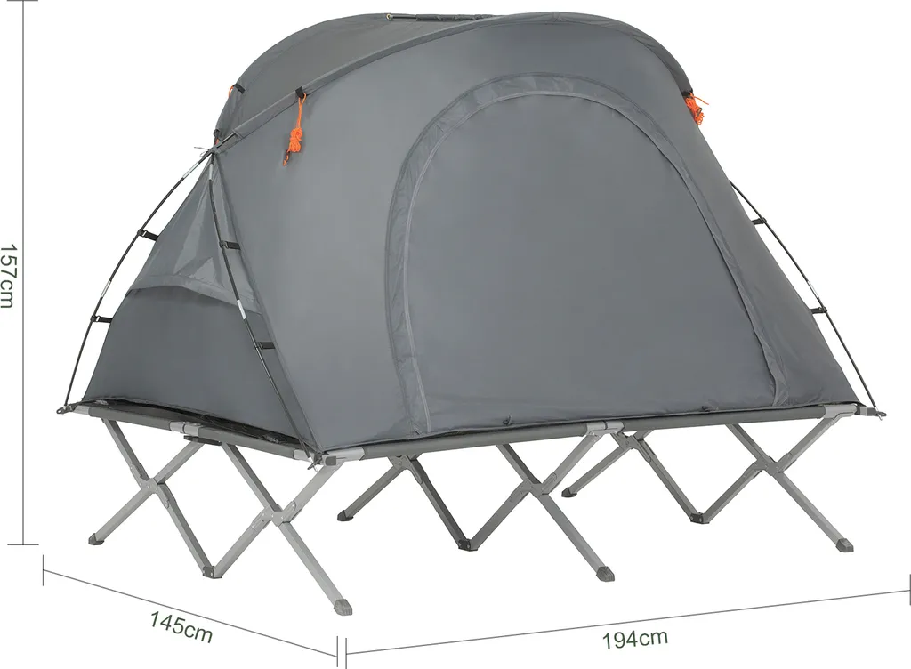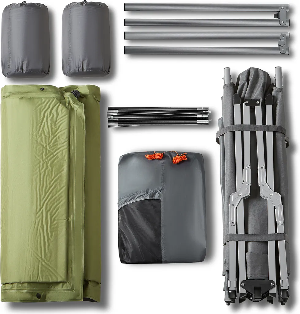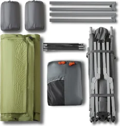 - Inklusive: Feldbett, Zeltdach, Matratze, Schlafsack und aufblasbares Kissen (inkl. passender Bezüge),Tragetasche.