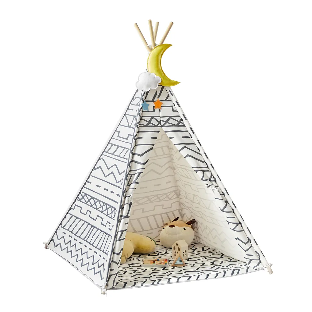 Ein Türvorhang und Tür bieten hervorragende Belüftung und Sicht für die Kleinen. Das Spielezelt besteht aus reißfestem Polyester und stabilen Stangen aus Holz.