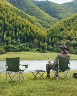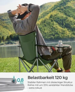 Nachdem Sie Ihr Zelt aufgestellt und die Gegend erkundet haben, können Sie und Ihr Partner sich endlich auf diesen 2 komfortablen Campingstühlen mit Armlehnen entspannen und die absolute Ruhe in der Natur genießen
