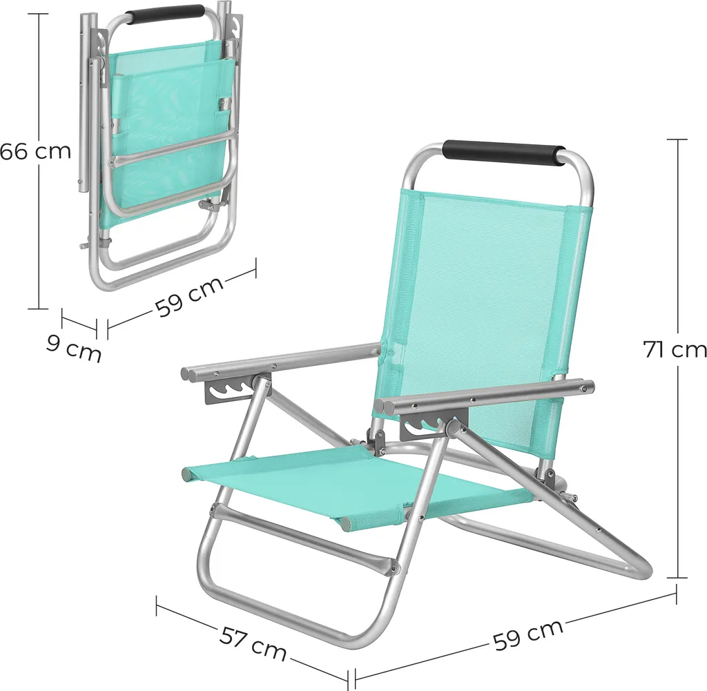 Das hochwertige Aluminiumgestell verleiht diesem Klappstuhl nicht nur eine hohe Stabilität, sondern sorgt auch für das geringe Gewicht des Stuhls, sodass Sie ihn einfach zum Strand mitnehmen können. Ihr Urlaub kann beginnen!