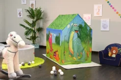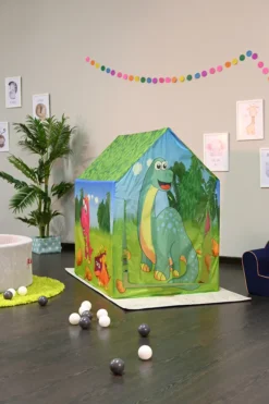 Dieses Spielzelt (Haus) im aufregenden Dino-Design von knorrtoys ist vielseitig einsetzbar und macht den Kleinen riesigen Spaß. Das Zelt besteht aus wasserabweisendem Zeltstoff. Der Eingang kann mit Bändern offengehalten werden. Die Plastikstangen sorgen für die nötige Stabilität des Zeltes und lassen sich leicht verbinden. Abmessungen: 95 x 70 x 100 cm (Innenmaß)