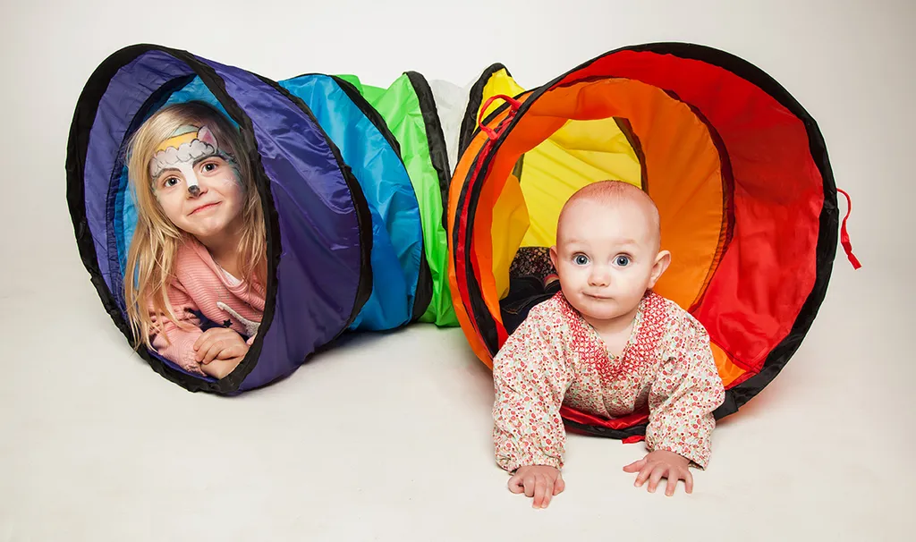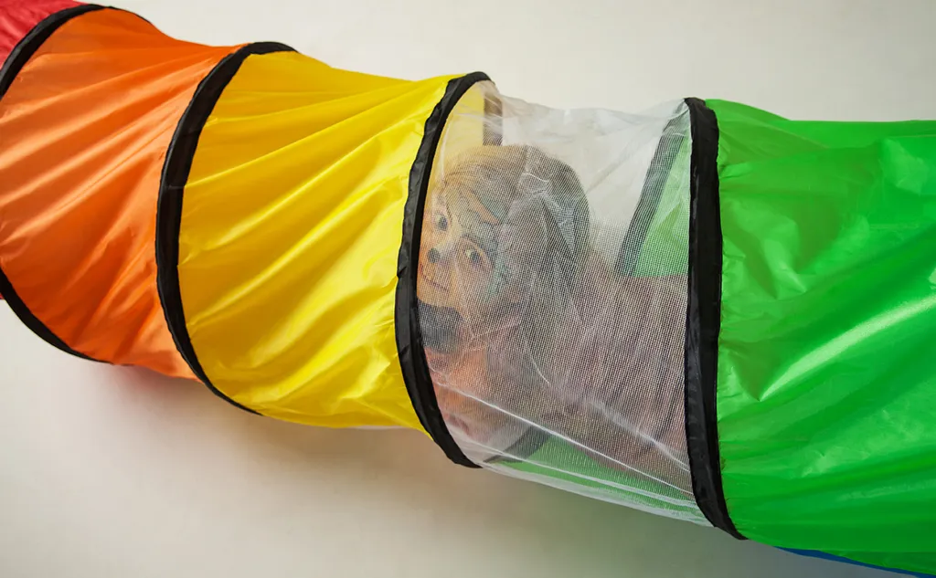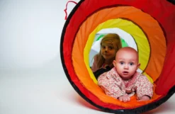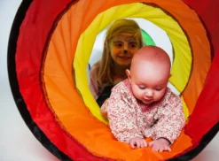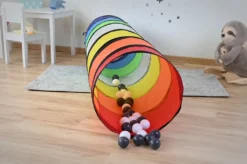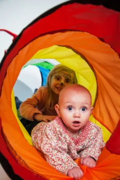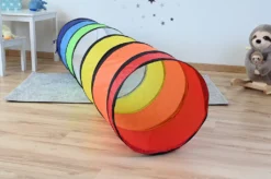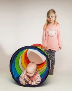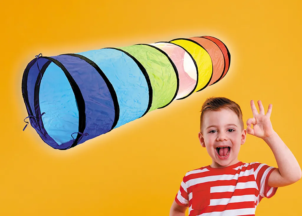 Diese tolle bunte Krabbelröhre aus wasserabweisendem Zeltstoff wird viel Freude und Spaß ins Kinderzimmer oder auch in den Garten bringen. Sie kann zur Verbindung von zwei Zelten genutzt werden, aber auch so können die Kinder einfach durchkrabbeln und ihren Spaß haben. Abmessungen: Ø 45 cm, 180 cm lang