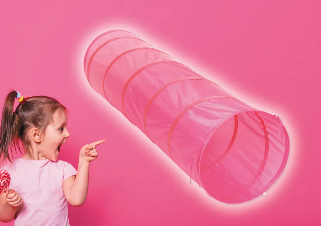 Diese pinke Krabbelröhre besteht aus wasserabweisendem Zeltstoff und wird ihren Kleinen viel Freude und Spaß ins Kinderzimmer oder auch in den Garten bringen. Die Kids können einfach durchkrabbeln und ihren Spaß haben oder die Kleinen spielen verstecken. Abmessungen: Ø ca. 48 cm, ca. 180 cm lang.