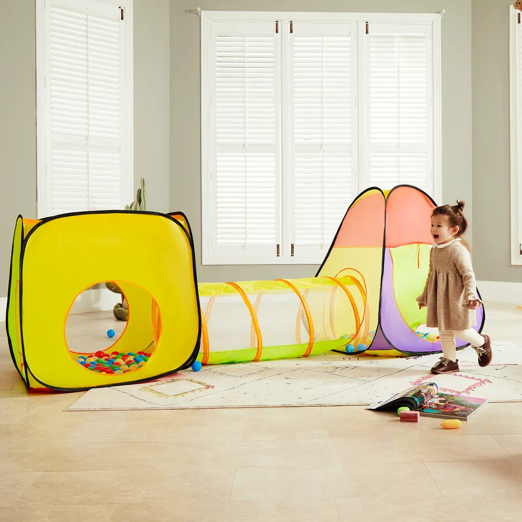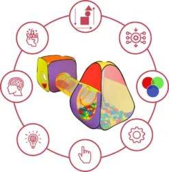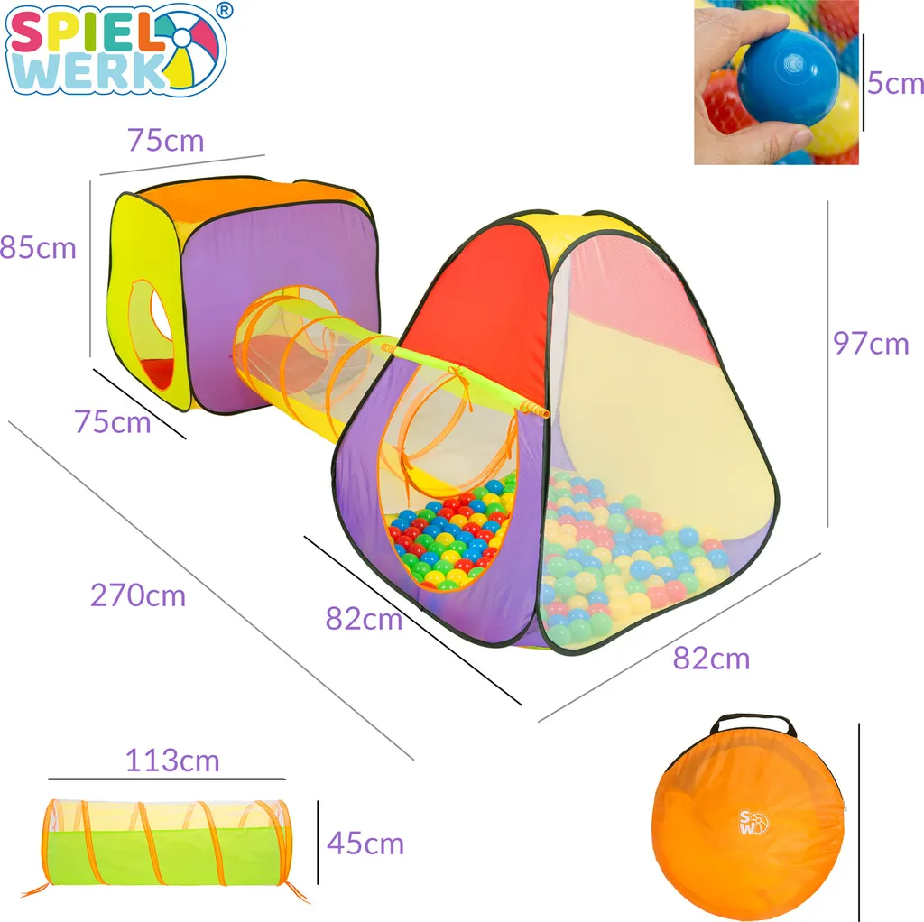 Schaffen Sie Ihren Kindern mit unserem Kinderzelt Set schnell und einfach ein eigenes Spielparadies im Kinderzimmer, Wohnzimmer oder Garten. Die Bällebäder lassen sich einzeln oder verbunden aufstellen und bieten Ihrem Kind vielseitigen Spielspaß mit individueller Gestaltung. Zusätzlich erhalten Sie 200 Bälle, die für noch mehr Vergnügen und Abwechslung sorgen.