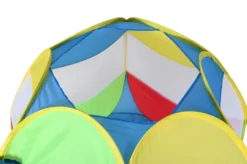 Dieses farbenfrohe, bunte Spielzelt von knorrtoys ist vielseitig einsetzbar und verspricht riesigen Spielspaß. Auch als Bällebad bestens geeignet (wir empfehlen den Zukauf von mind. 100 Bällen). Der Eingang kann mit Bändern offengehalten werden. Dank der Seitenwände aus Gaze haben die Kids auch während des Spielens den vollen Durchblick. Das Zelt besteht aus wasserabweisendem Zeltstoff und ist abwischbar. Abmessungen: ca. 100 x 100 x 90 cm