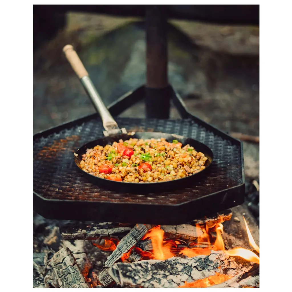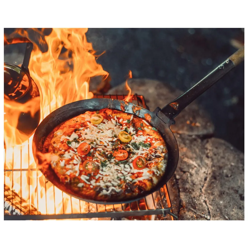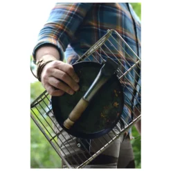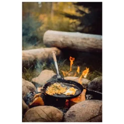 Die Pfanne besteht aus Kohlenstoffstahl/Gusseisen und hält wirklich sehr hohe Temperaturen aus. Die in Schweden hergestellte robuste Pfanne eignet sich ideal für das Kochen über dem offenen Feuer.