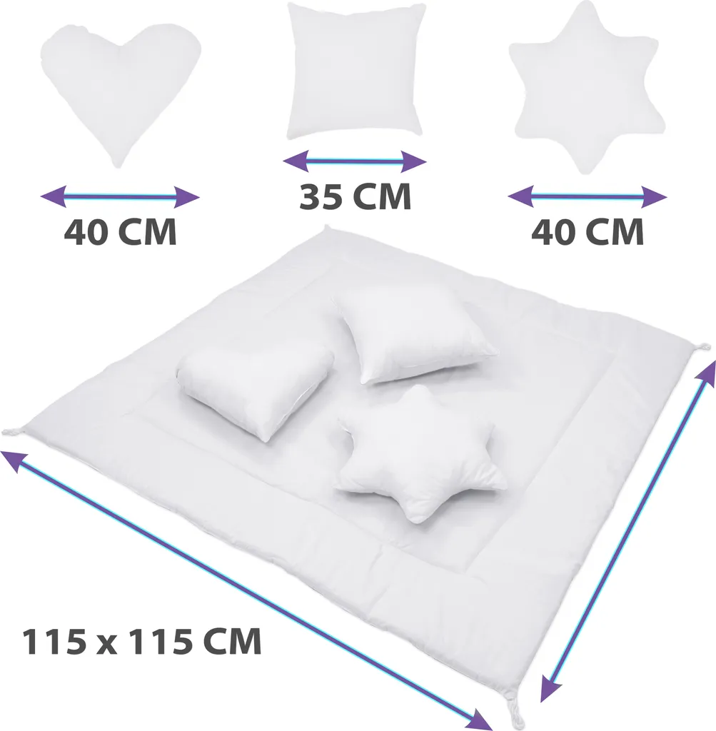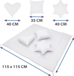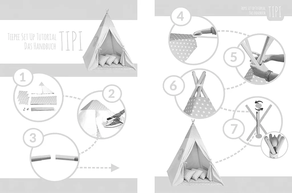 Entzückendes Kinderzelt, das Ihr Kind in seine eigene Spielwelt versetzt. Mit dem Spielzelt tipi geben Sie Ihrem Kind einen Ort, an den es sich zurückziehen kann, wo es spielt und träumt. Zelte, auch Deco-Tipi genannt regen die Fantasie und Kreativität von Kindern und Eltern an. Ein schöner Teil für alle Mamas und Ihre Kinder ist das Dekorieren. Mit Decken und Kissen kann das Babyzelt eine gemütlichen Spieloase Ihres Kindes werden. HANDMADE mit viel Liebe zum Detail designed – schlichtes Design macht jede Spielecke im Kinderzimmer zum dekorativen Blickfang. OUTDOOR – strapazierfähig durch hochwertige Verarbeitung und feste Nähte kann das Kinderspielzelt ohne Bedenken im Freien aufgestellt werden. PFLEGELEICHT – Stoff lässt sich bei Verschmutzung problemlos bei 30 Grad waschen. Tippi wird von robusten Holzstäben zusammengehalten. Es kann sehr leicht auf- und abgebaut sowie bequem transportiert werden. LIEFERUMFANG: Modell 1, Modell 2, Modell 3: (Tipi Zelt, 4 Holzstangen, Bodenmatte, 3 Kissen + Stabilisator): Höhe 140cm, Breite 130 cm, Länge 109 cm. Spielmatte 115×115 cm. Material: Baumwolle. Modell 4, Modell 5: (Tipi Zelt, 4 Holzstangen, Bodenmatte und 3 Kissen 35×35 cm): Höhe 140cm, Breite 130 cm, Länge 109 cm. Spielmatte 115×115 cm. Material: Baumwolle. Modell 6 (Tipi Zelt, 4 Holzstangen, mit Spielmatte und 3 Kissen): Höhe 140cm, Breite 130 cm, Länge 109 cm. Spielmatte 115×115 cm. Material: Baumwolle. Modell 7, Modell 8: (Tipi Zelt, 4 Holzstangen, mit Spielmatte und 3 Kissen): Höhe 140cm, Breite 130 cm, Länge 109 cm. Spielmatte 115×115 cm. Kissen: 40×40 cm, mehrere Farben zur Wahl. Material: Polyester. BITTE BEACHTEN: Die restlichen Gegenstände auf dem Foto sind Dekoration. ACHTUNG! Der Farbton kann leicht variieren, abhängig vom Licht auf den Fotos (natürlich / künstlich), der Materialcharge oder den Monitor Einstellungen.