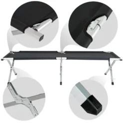 Auf diesem Feldbett hast Du auch auf Festivals und beim Camping eine erholsame Nacht. Dank der Klappvorrichtung und einer Tragetasche ist das Feldbett leicht transportier- und verstaubar. Feldbetten mit Aluminiumgestell sind verhältnismäßig leicht und trotzdem stabil. Ob Outdoor oder im Zelt, mit dem Feldbett liegst Du immer richtig!