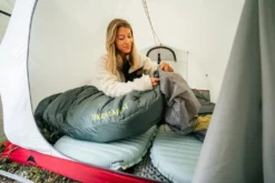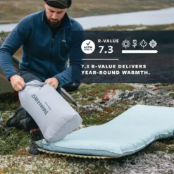 - WingLock™ Ventil: Schnelles Aufblasen in nur eine Richtung und schnelles Luftablassen mit der Möglichkeit, während des Liegens auf der Matte – selbst mit Handschuhen – kleinere Anpassungen am Luftvolumen vorzunehmen.
