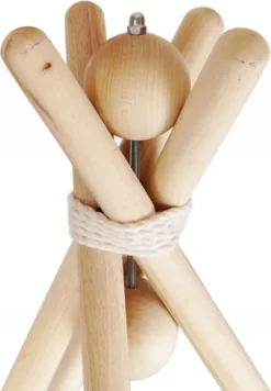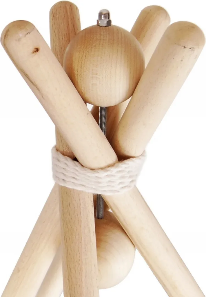 Tippi wird von robusten Holzstäben zusammengehalten. Es kann sehr leicht auf- und abgebaut sowie bequem transportiert werden.