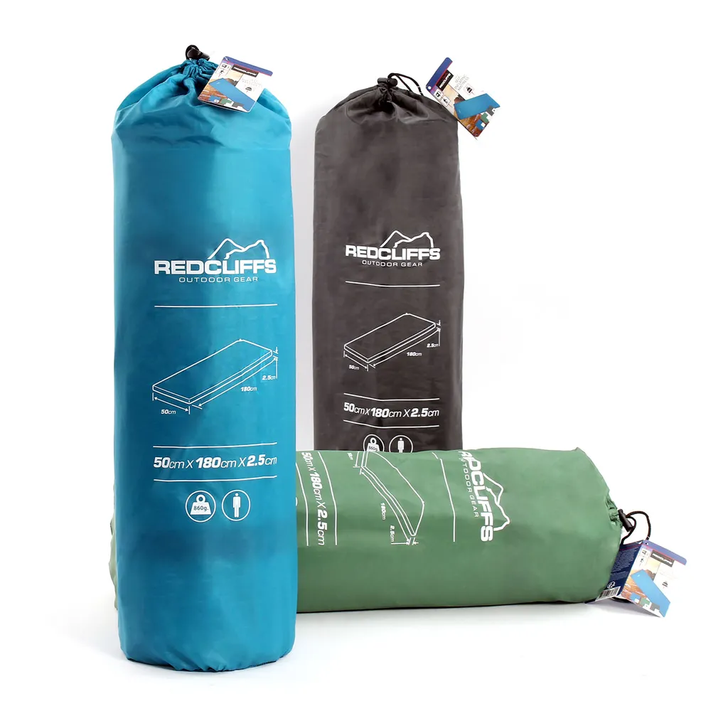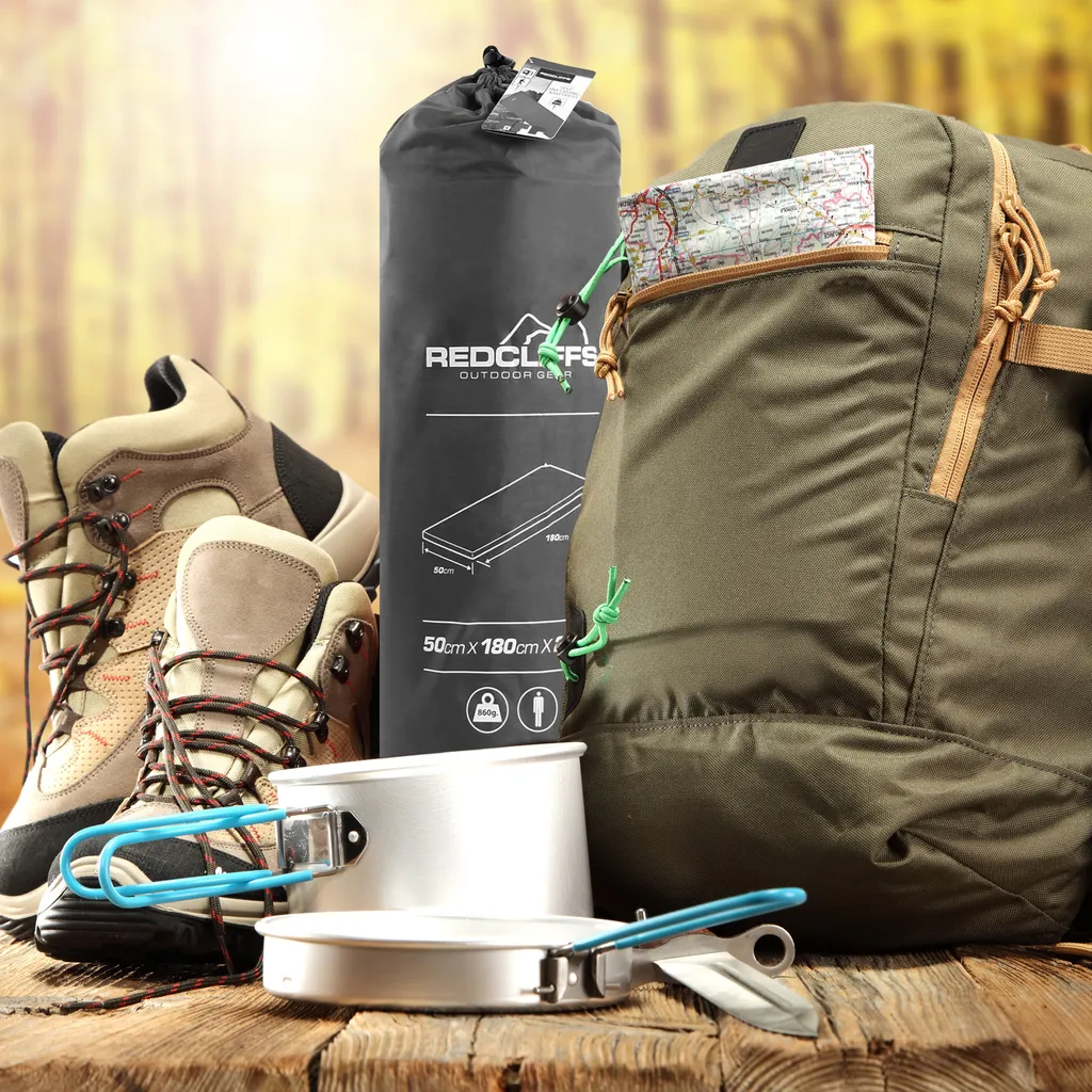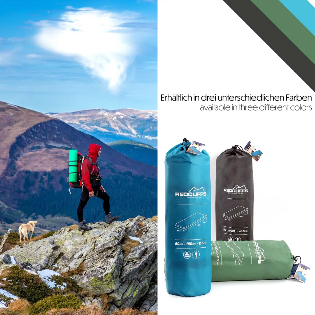 Mit der grauen Isomatte von Toboli steht dem nächsten Abenteuer in der Natur nichts im Wege. Die Matte hat im aufgeblasenen Zustand eine Größe von 180 x 50 x 2,5 cm (LxBxH) und bietet damit ausreichend Liegefläche für einen komfortablen Schlaf. Doch die Isomatte hat eine Besonderheit: Sie ist selbstaufblasend! Das heißt, sobald sie ausgebreitet ist, nimmt sie die beschriebene Form und Dicke an. Da sich selbstaufblasbare Matten nur zu ca. 80 % selber füllen, muss für den gewünschten Härtegrad der Rest mit dem Mund aufgeblasen werden.