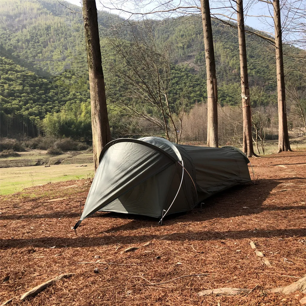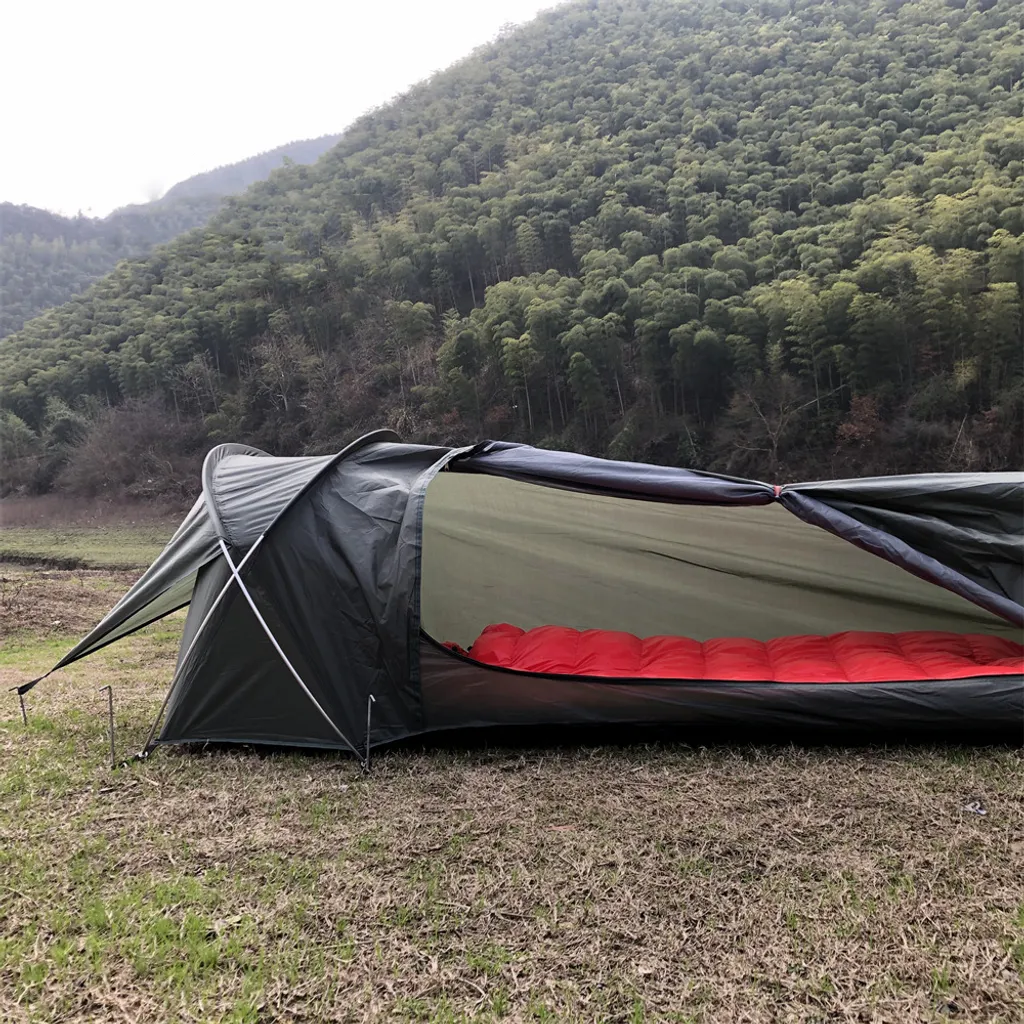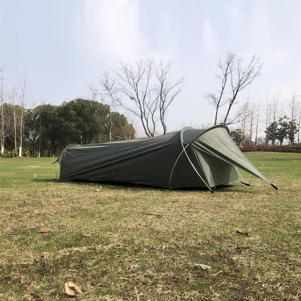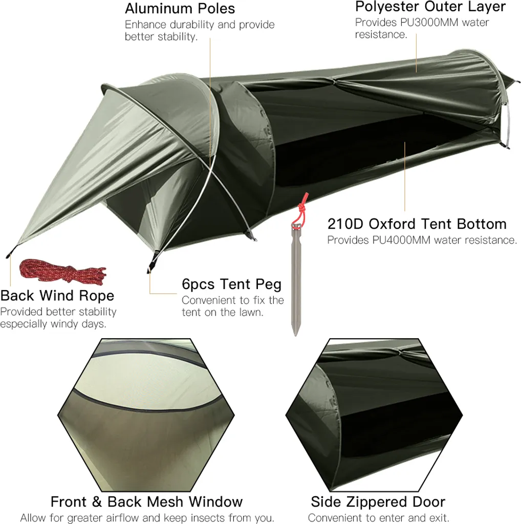 Polyester-Aussenschicht und 210D-Oxford-Zeltboden bieten PU3000MM- und PU4000MM-Wasserbestaendigkeit.