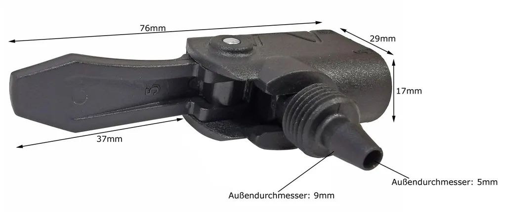 - Schlauch-Innendurchmesser: ab 5mm, Schlauch-Außendurchmesser: bis 9mm