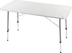 Der Campingtisch für 4 Personen, ein standfester Tisch mit höhenverstellbaren Beinen. Besonders stabile Konstruktion aus Aluminium. Der Tisch kann in der Transporttasche verstaut werden.