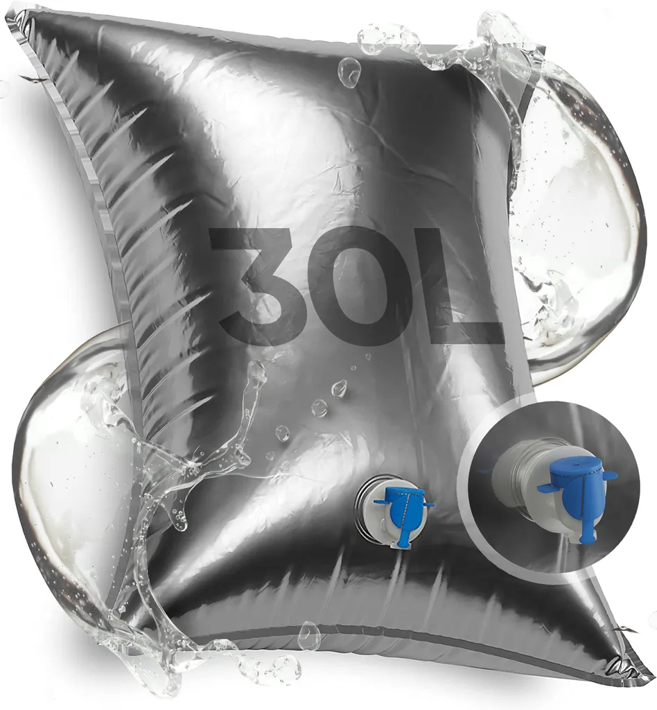 VERTRAUENSWÜRDIGES MATERIAL: Das Außenmaterial besteht aus einer reißfesten Lichtschutzfolie und die Innenseite aus der lebensmittelechten Kunststofffolie. Die Materialien dieser Wassergallone 30L sind steril und BPA-frei. Das Außenmaterial schützt die darin enthaltene Flüssigkeit oder Körner und hält sie monatelang frisch.