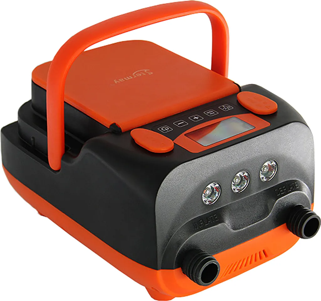 - Die automatische zweistufige Pumpe blaest sich in der ersten Stufe schnell auf und laedt dann automatisch in die zweite Stufe, um auf den ausgewaehlten Druck aufzublasen.